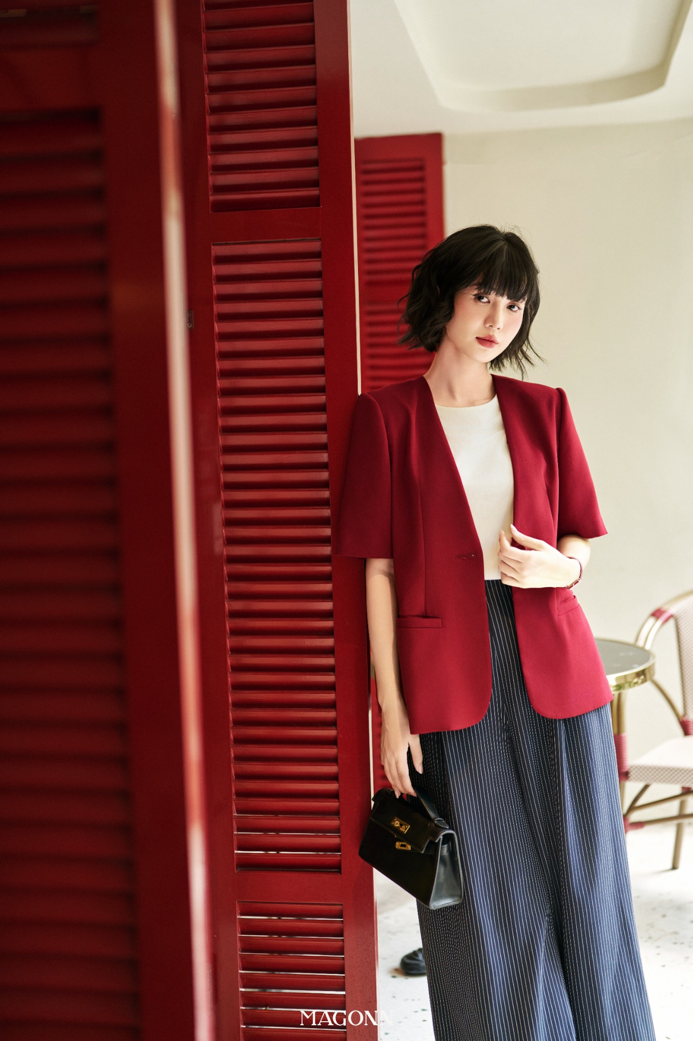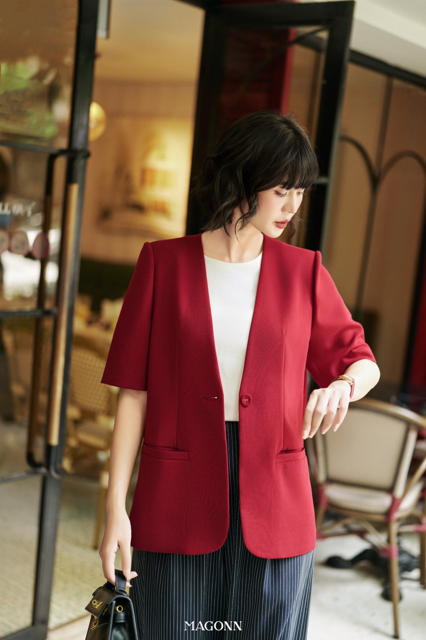 * Kiểu dáng: Blazer dáng suông, tay ngắn