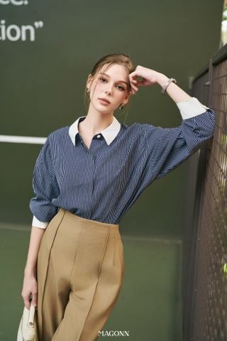 * Kiểu dáng: Sơ mi dáng suông, tay dài