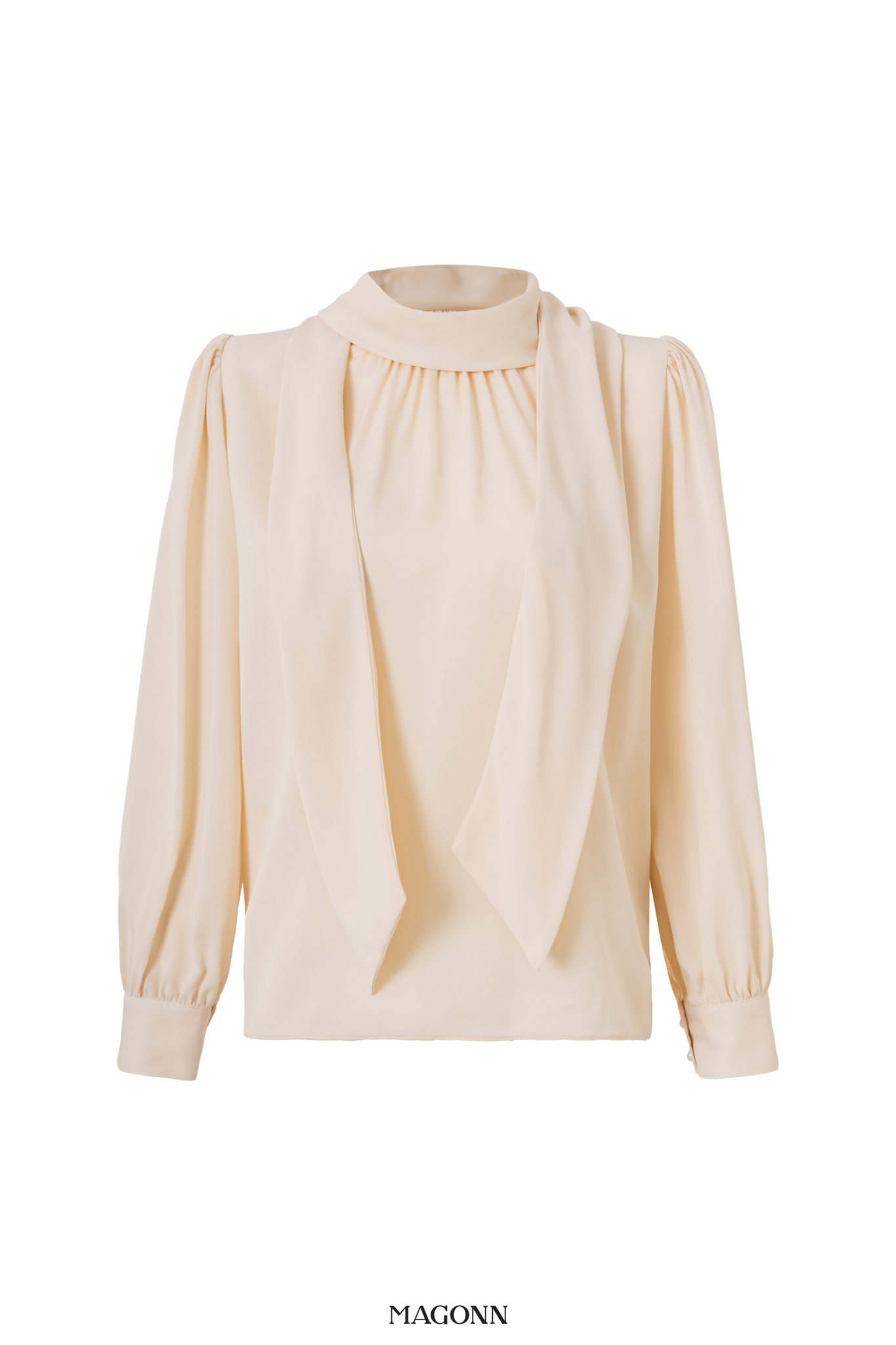 * Kiểu dáng: Sơ mi dáng suông, tay dài, cổ cao, phối dây lụa