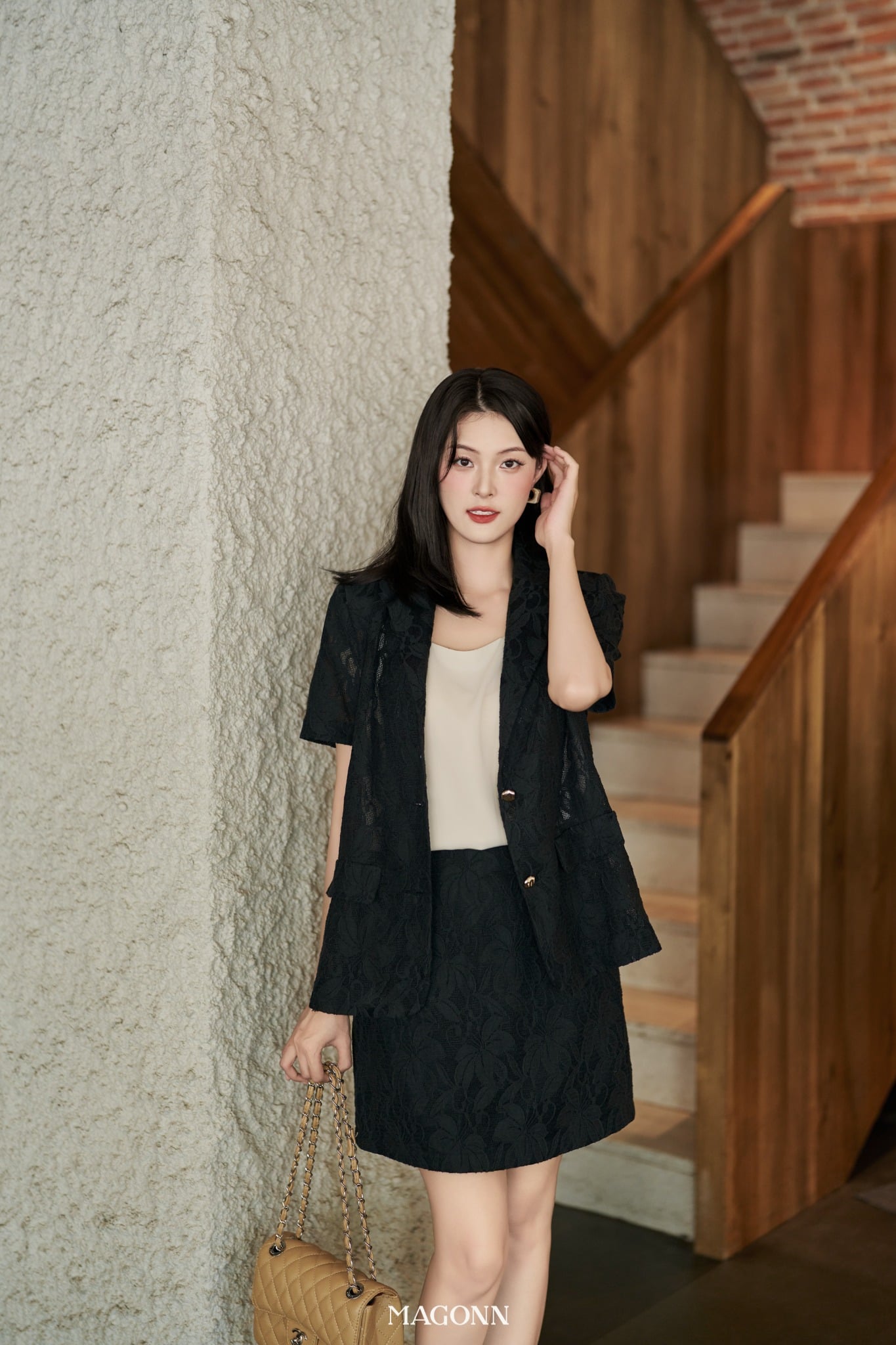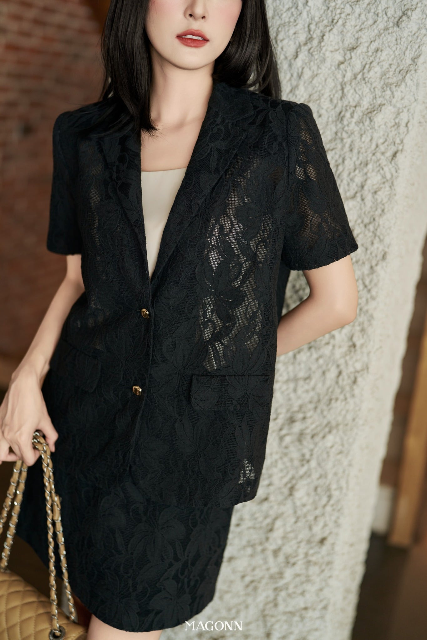 * Kiểu dáng: Blazer tay ngắn, dáng suông