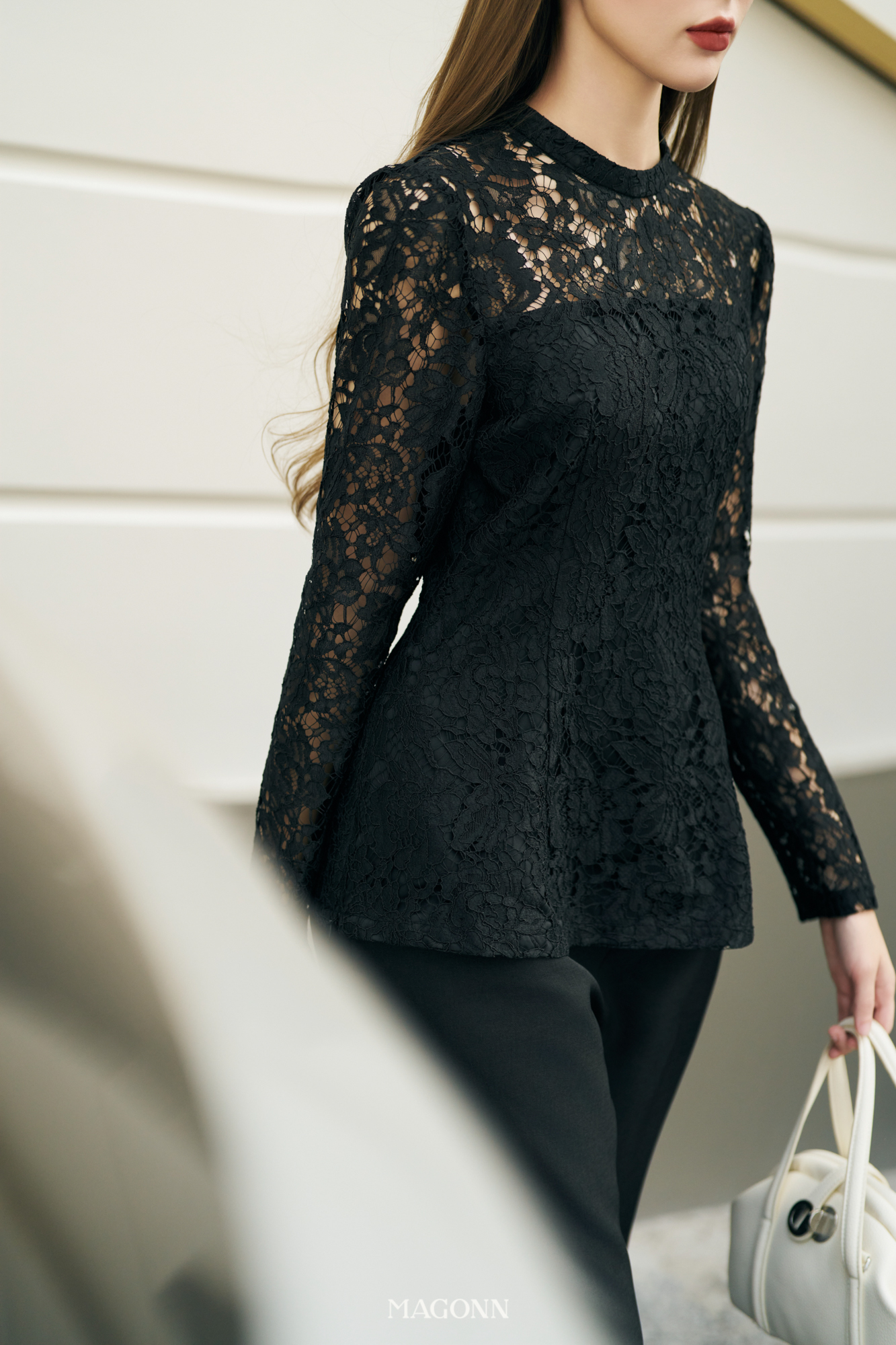 * Kiểu dáng: Áo dáng peplum, chiết ẻo, tay dài, cổ tròn