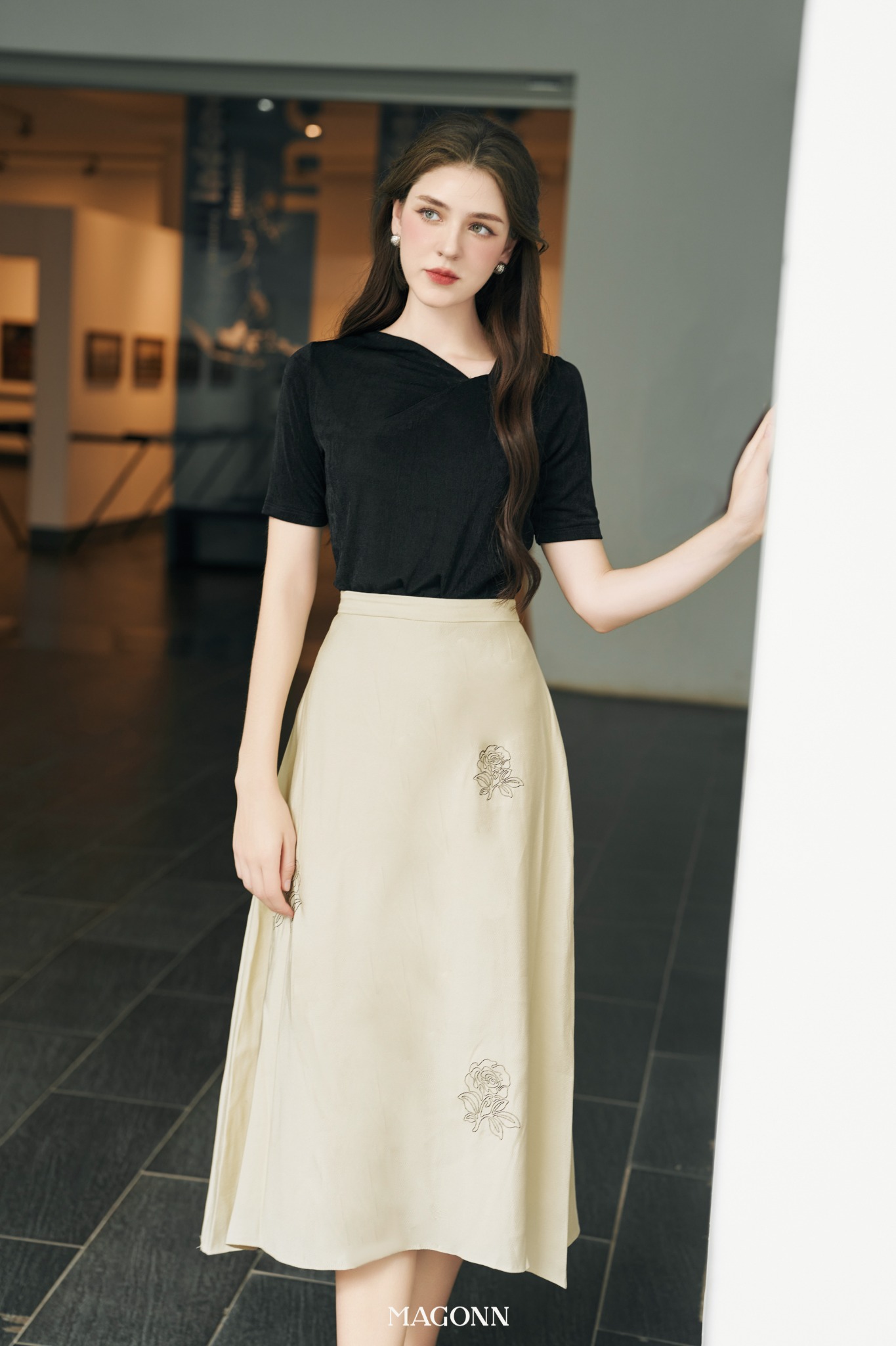 * Kiểu dáng: Áo kiểu, tay ngắn, cổ xoắn cách điệu