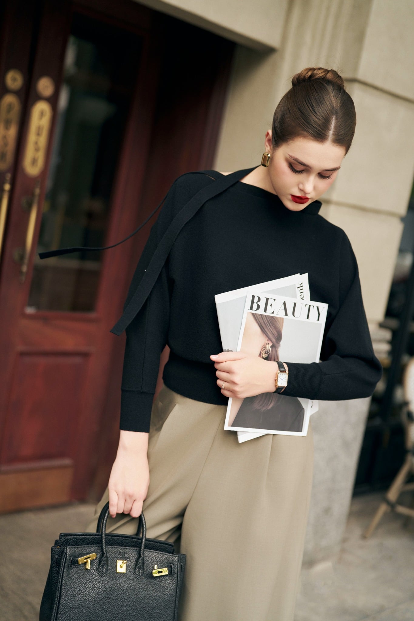 * Kiểu dáng: Áo len basic, kèm khăn quàng