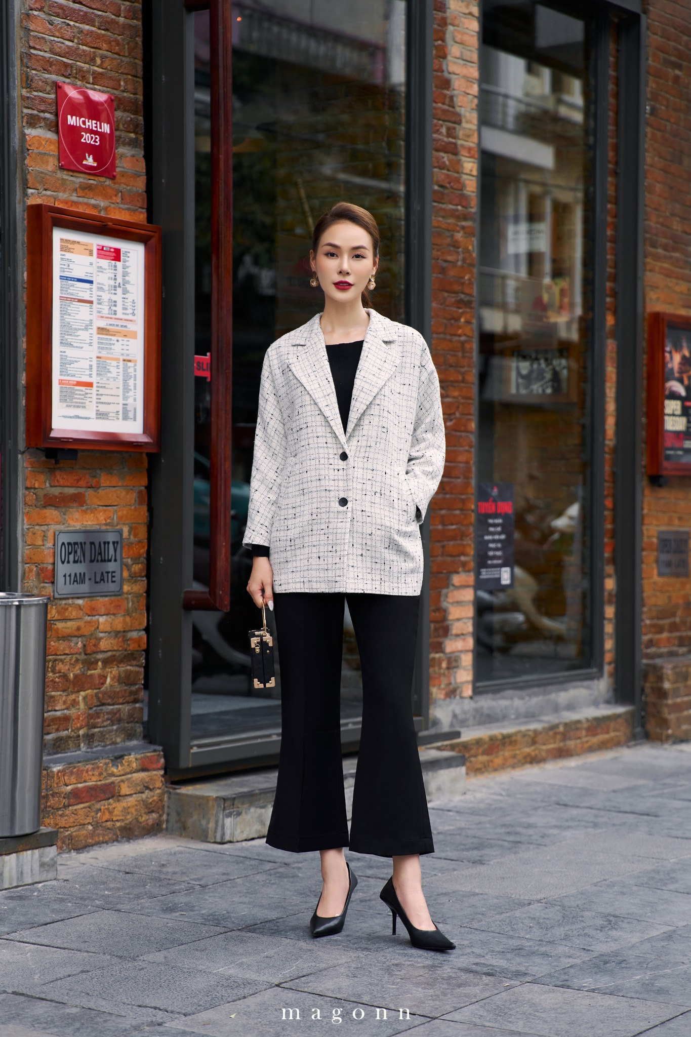| * Kiểu dáng: Áo khoác kẻ dáng rộng * Chất liệu: Tweed * Màu sắc: Kẻ đen trắng '#### LƯU Ý: - FREESHIP cho đơn hàng Online giá trị từ 2.000.000đ. - Magonn không hỗ trợ xem hàng. - Khách hàng giữ lại hóa đơn cùng tag giá và mác dệt sản phẩm để được hỗ trợ trong trường hợp muốn đổi hoặc sửa với hàng Nguyên Giá. - Hàng giảm giá không áp dụng đổi hàng và không áp dụng chỉnh sửa. - Các sản phẩm đã thanh toán không được hoàn lại tiền vì bất cứ lý do nào. - Thông tin chi tiết về chính sách đổi/sửa xem tại: https://magonn.com/pages/chinh-sach-mua-hang Thông tin thêm về số lượng tồn sản phẩm liên hệ hotline: 0888482886 |
