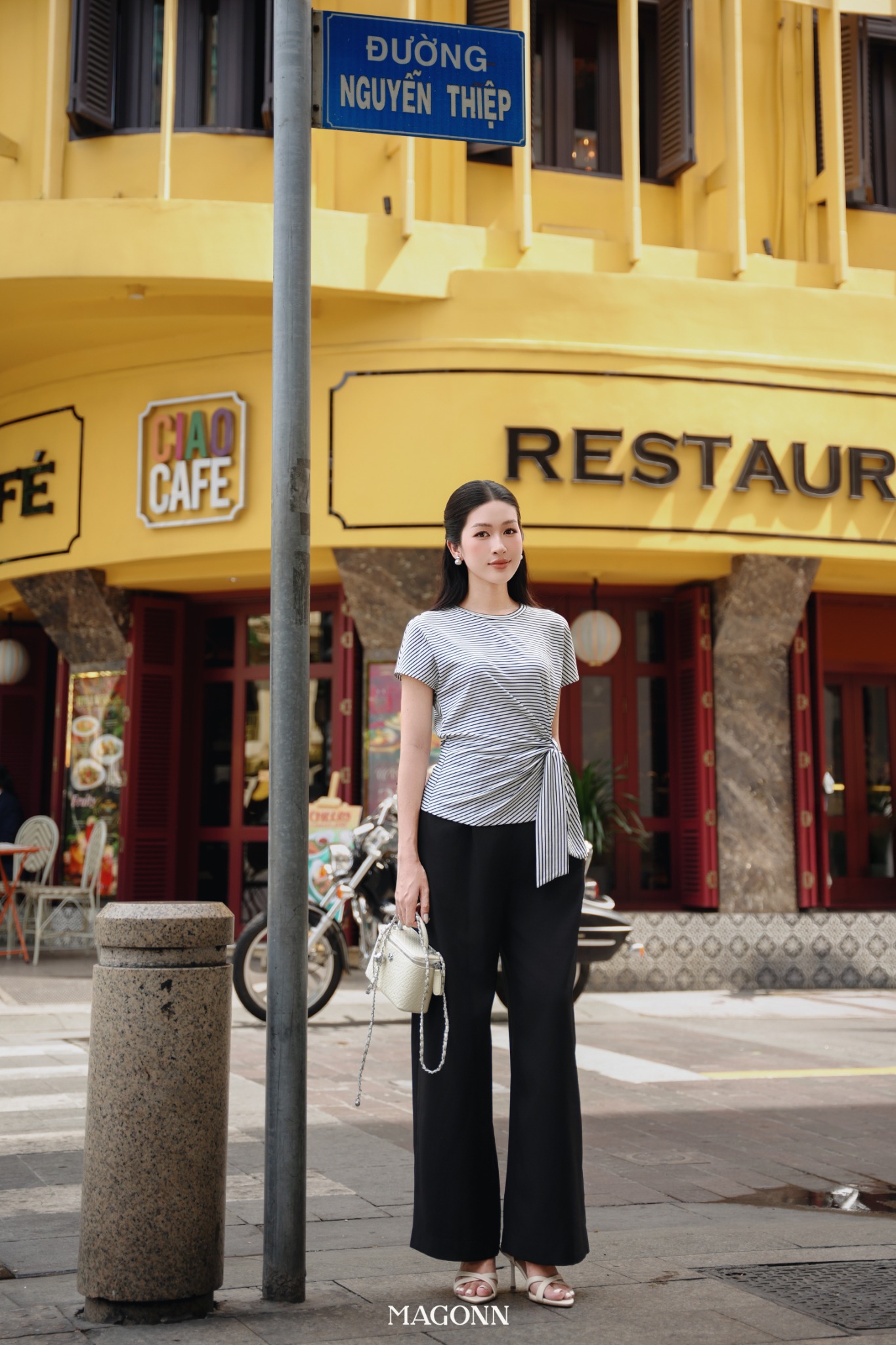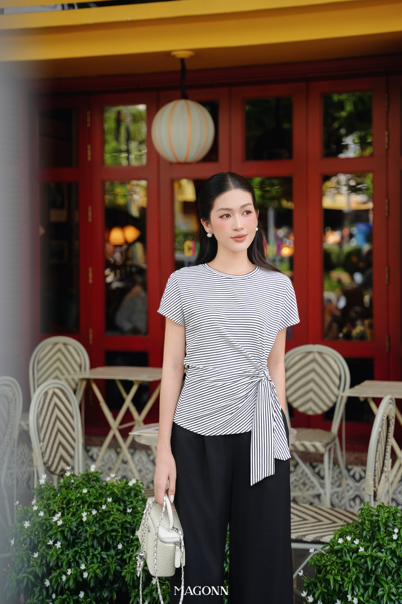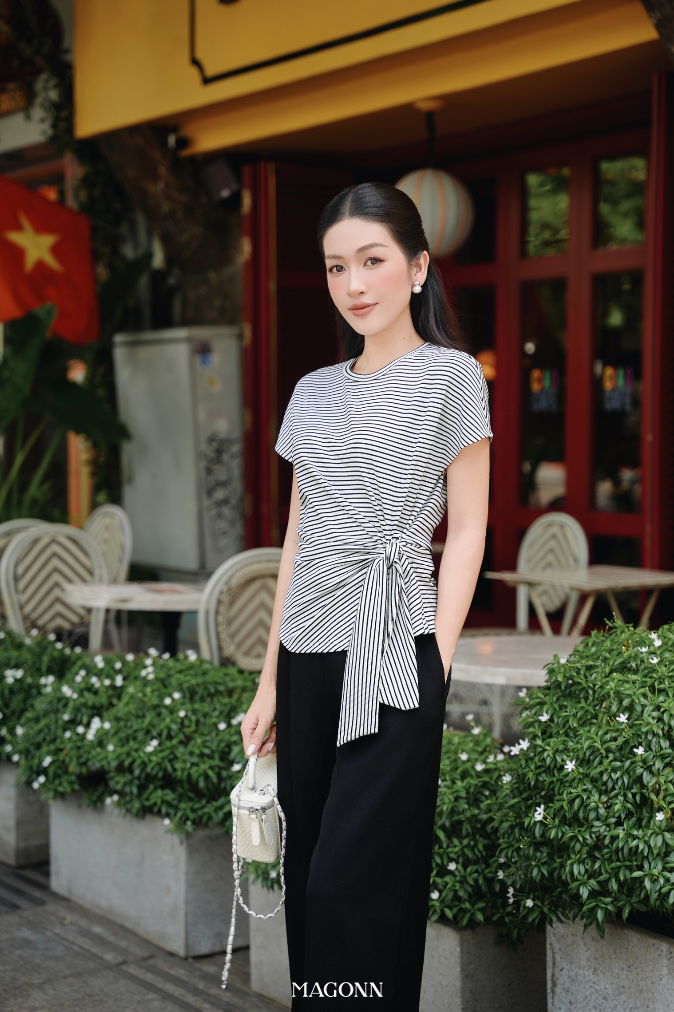 * Kiểu dáng: Áo kiểu, cổ tròn, tay ngắn, xoắn eo