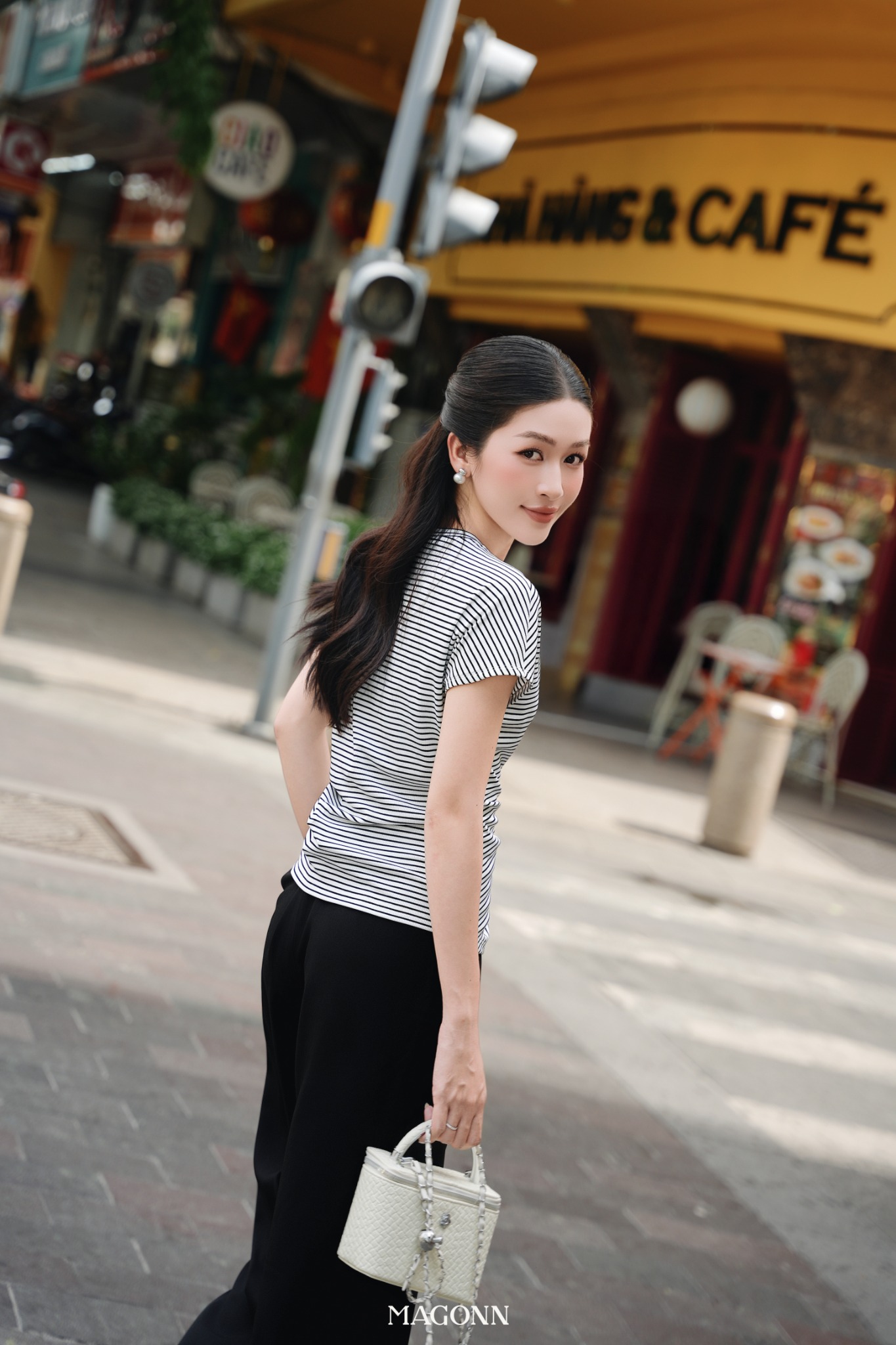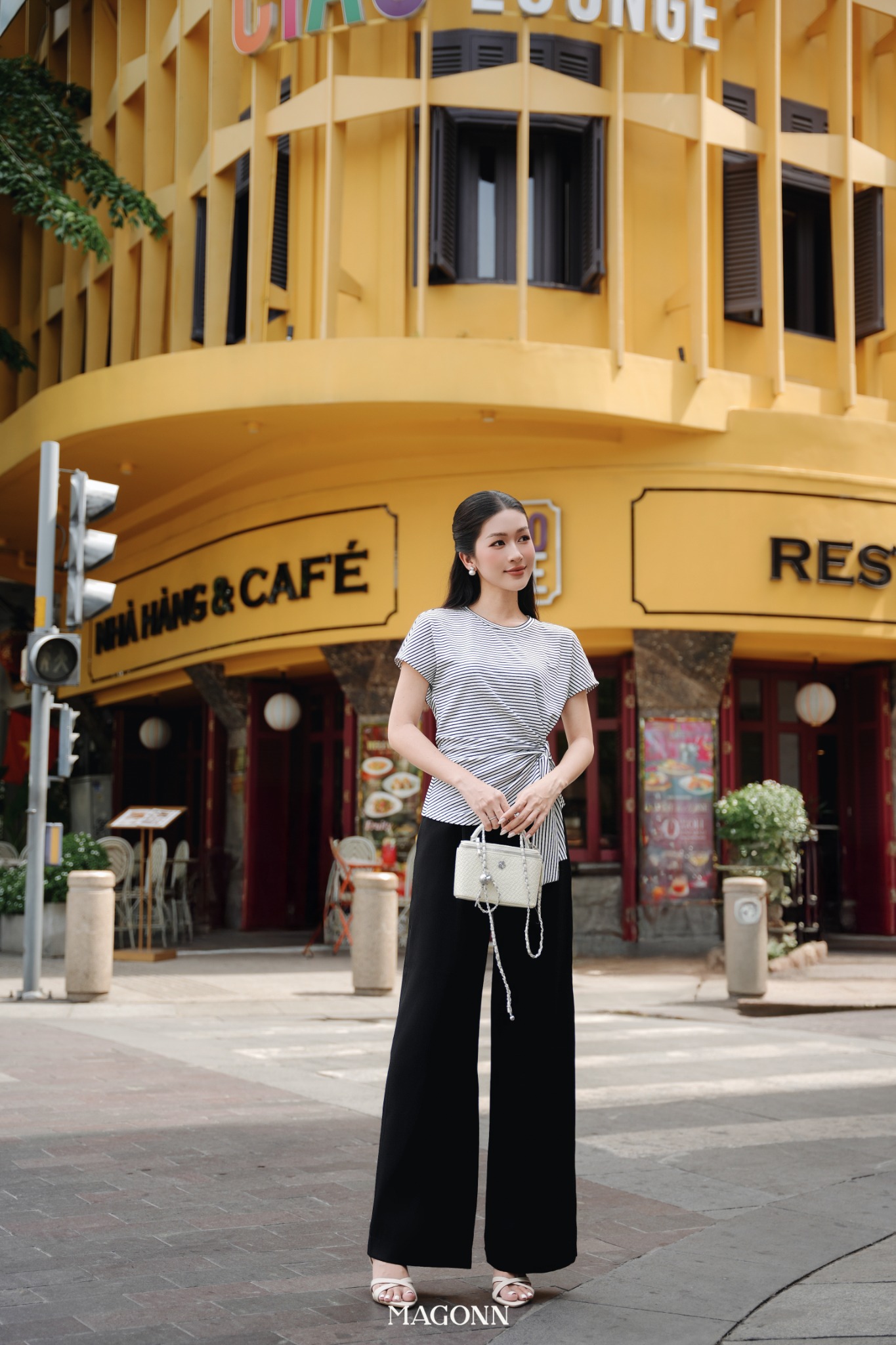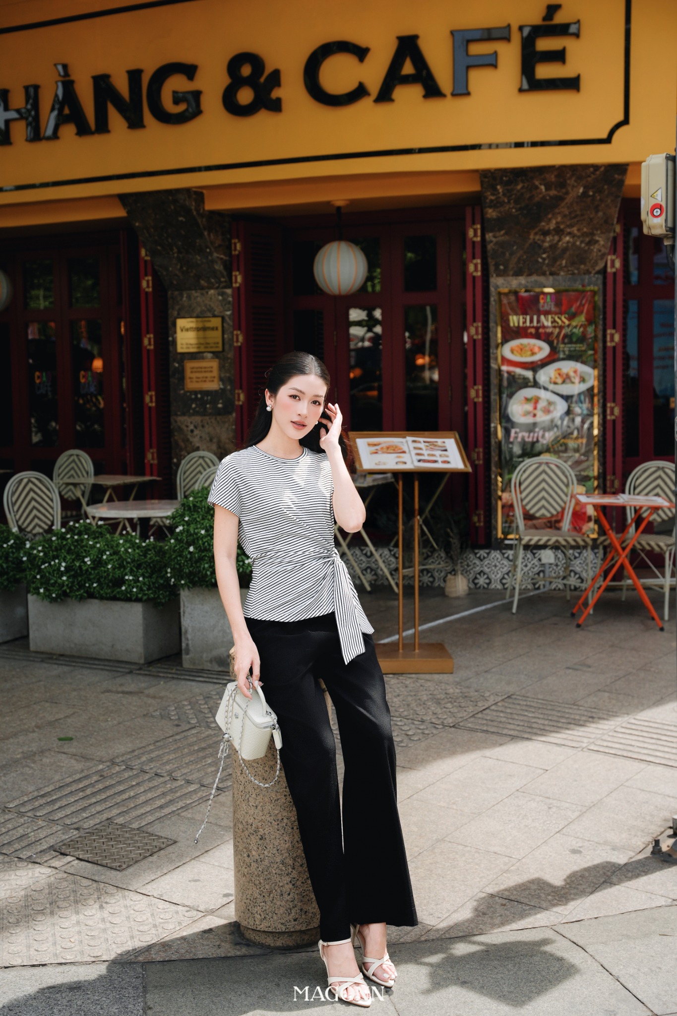 * Kiểu dáng: Áo kiểu, cổ tròn, tay ngắn, xoắn eo