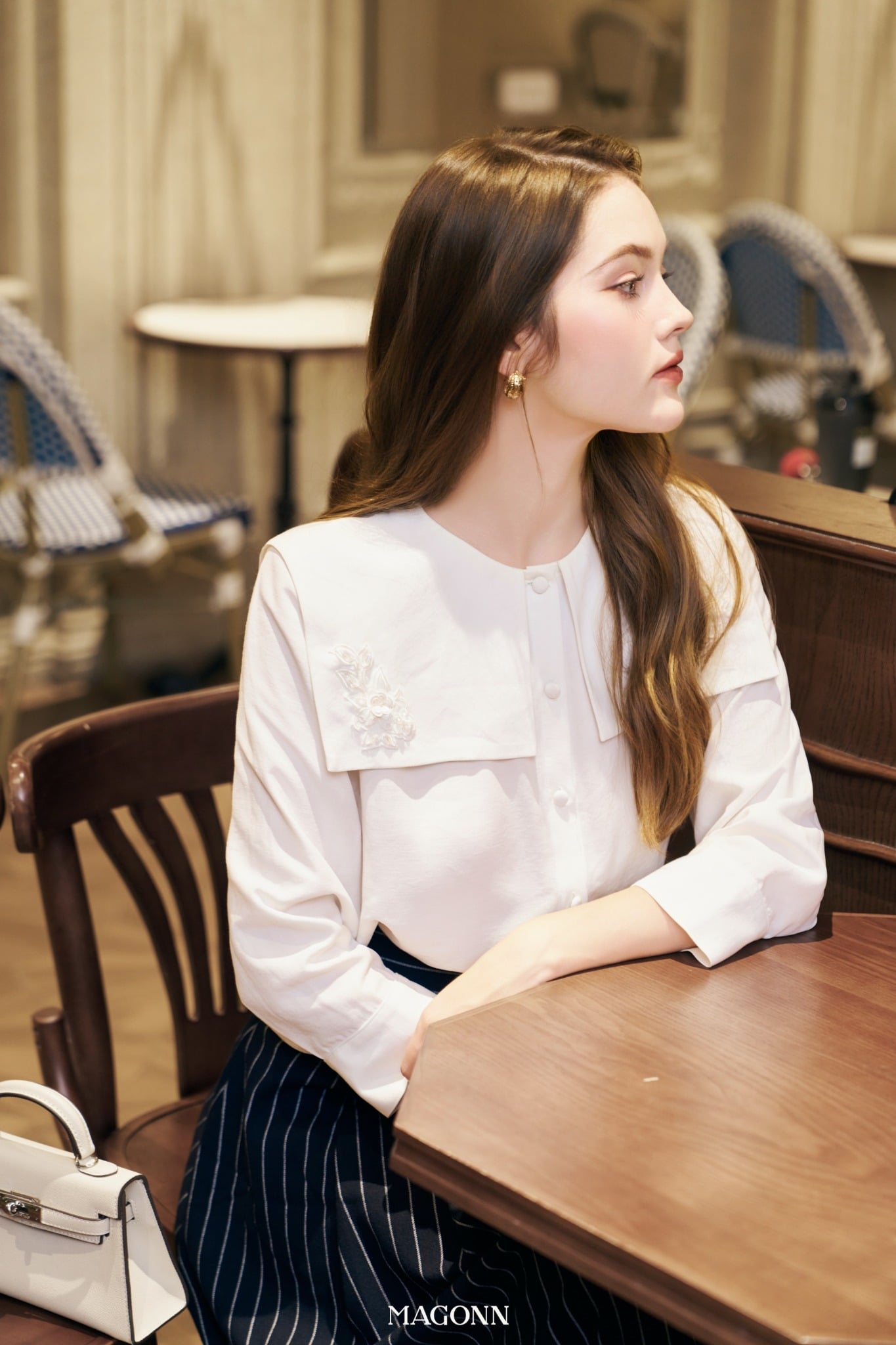 * Kiểu dáng: Áo suông, cổ thủy thủ, tay dài