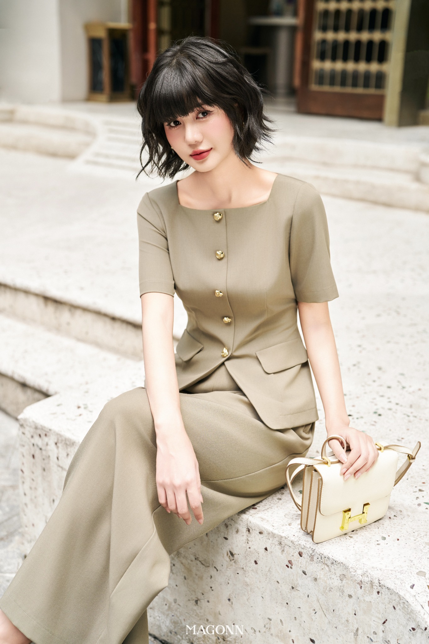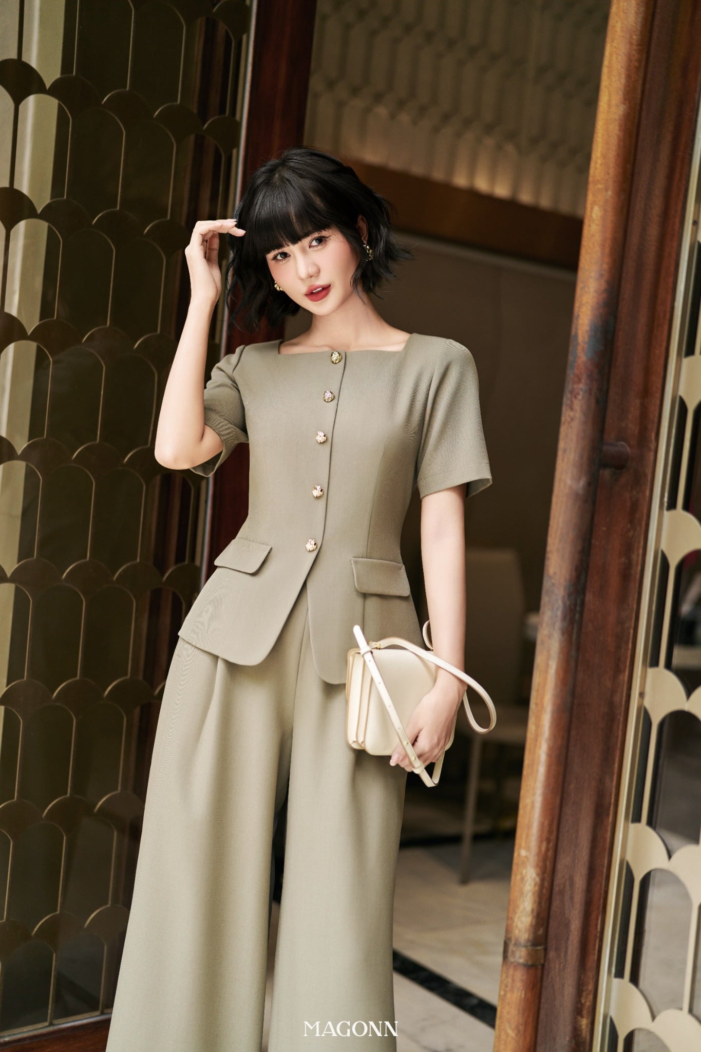 * Kiểu dáng: Áo cổ vuông, tay ngắn, dáng peplum