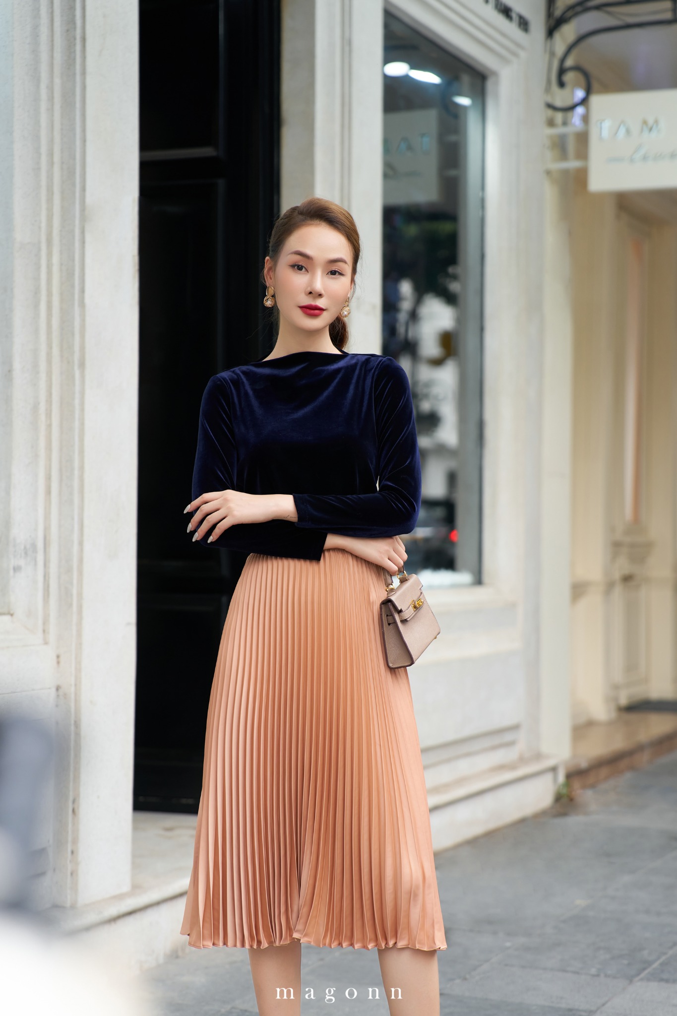 | * Kiểu dáng: Áo dài tay dáng ôm * Chất liệu: Nhung * Màu sắc: Navy '#### LƯU Ý: - FREESHIP cho đơn hàng Online giá trị từ 2.000.000đ. - Magonn không hỗ trợ xem hàng. - Khách hàng giữ lại hóa đơn cùng tag giá và mác dệt sản phẩm để được hỗ trợ trong trường hợp muốn đổi hoặc sửa với hàng Nguyên Giá. - Hàng giảm giá không áp dụng đổi hàng và không áp dụng chỉnh sửa. - Các sản phẩm đã thanh toán không được hoàn lại tiền vì bất cứ lý do nào. - Thông tin chi tiết về chính sách đổi/sửa xem tại: https://magonn.com/pages/chinh-sach-mua-hang Thông tin thêm về số lượng tồn sản phẩm liên hệ hotline: 0888482886 |