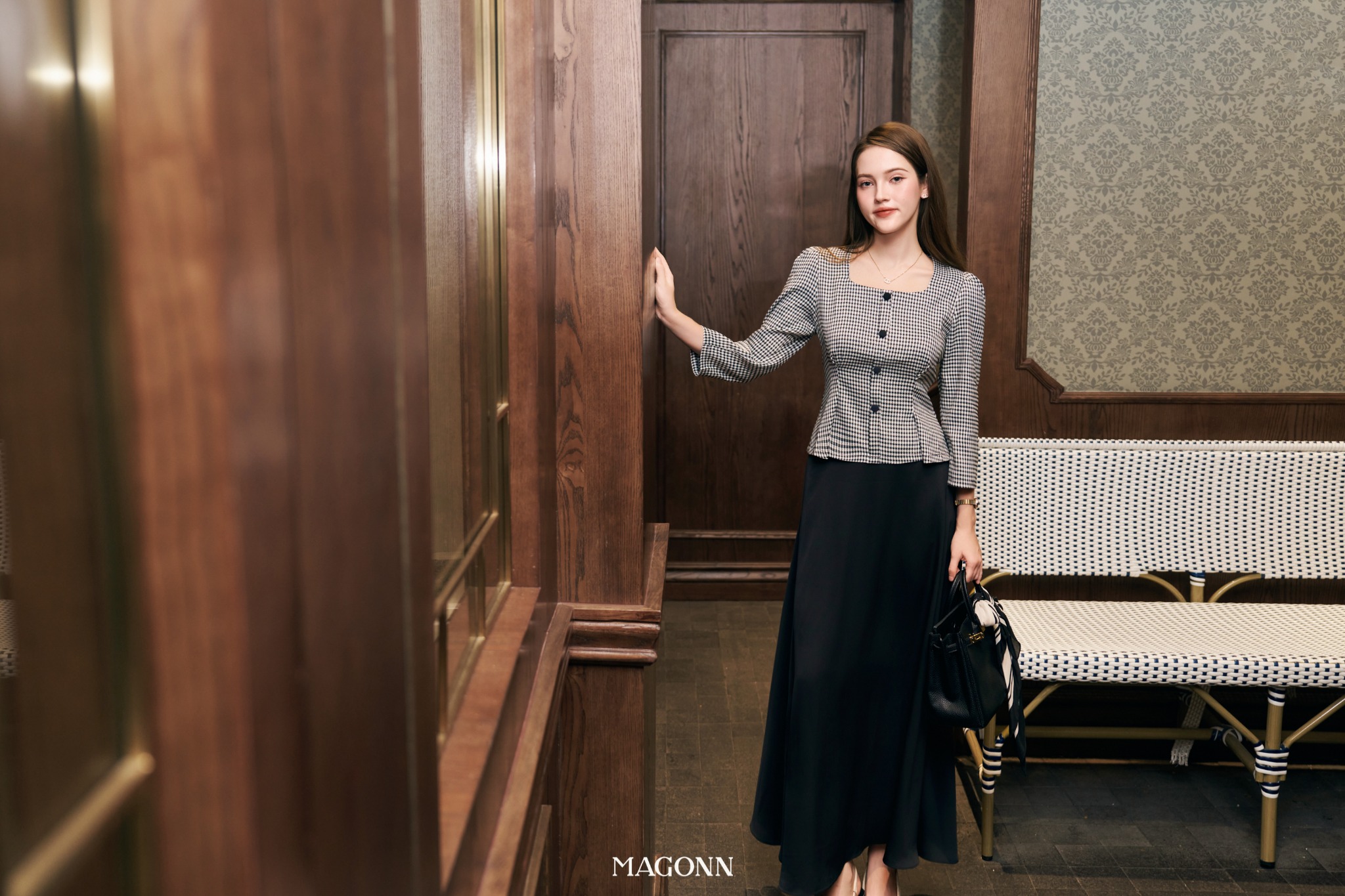 * Kiểu dáng: Chân váy dáng dài, cạp cao