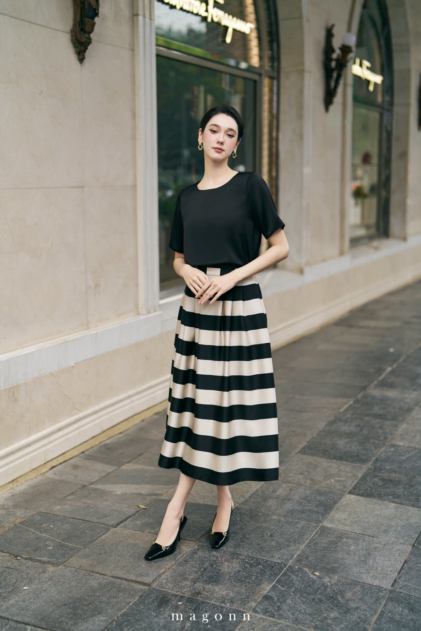 * Kiểu dáng: Váy dáng xòe, xếp li nhẹ * Chất liệu: Lụa Nhật * Màu sắc: Kẻ to kem - đen #### LƯU Ý: - FREESHIP cho đơn hàng Online giá trị từ 2.000.000đ. - Magonn không hỗ trợ xem hàng. - Khách hàng giữ lại hóa đơn cùng tag giá và mác dệt sản phẩm để được hỗ trợ trong trường hợp muốn đổi hoặc sửa với hàng nguyên giá. - Hàng giảm giá không áp dụng đổi hàng và không áp dụng chỉnh sửa. - Các sản phẩm đã thanh toán không được hoàn lại tiền vì bất cứ lý do nào. - Thông tin chi tiết về chính sách đổi/sửa xem tại: https://www.magonn.com/pages/chinh-sach-doi-hang Thông tin thêm về số lượng tồn sản phẩm liên hệ hotline: 0888482886 |
