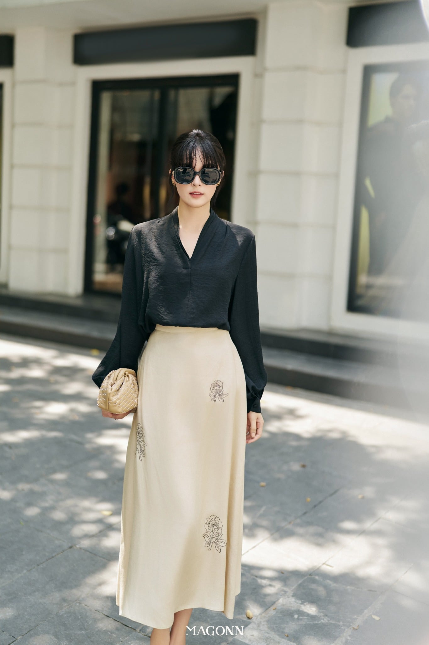* Kiểu dáng: Chân váy dáng dài, cạp cao