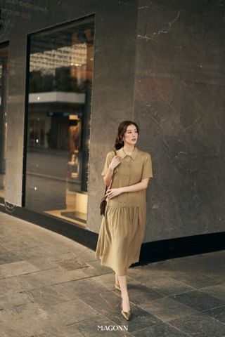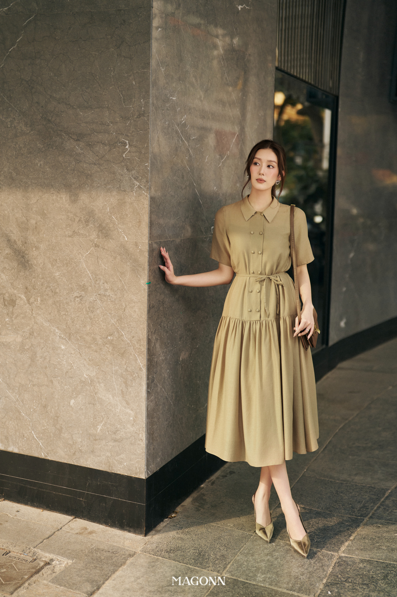 * Kiểu dáng: Váy dáng suông, cổ sơ mi, tay ngắn, đai rời