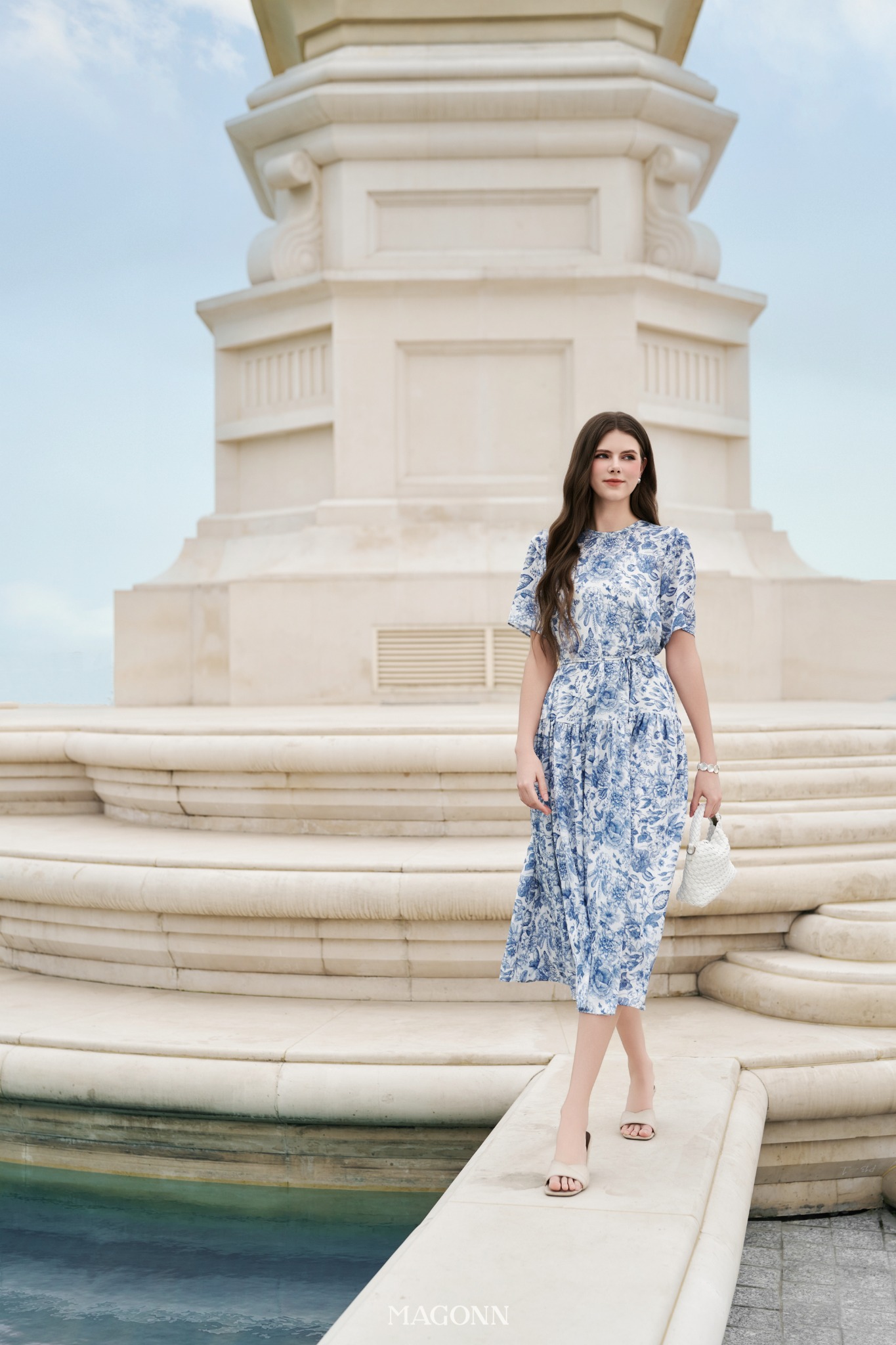 * Kiểu dáng: Váy suông, cổ tròn, tay ngắn, đai rời