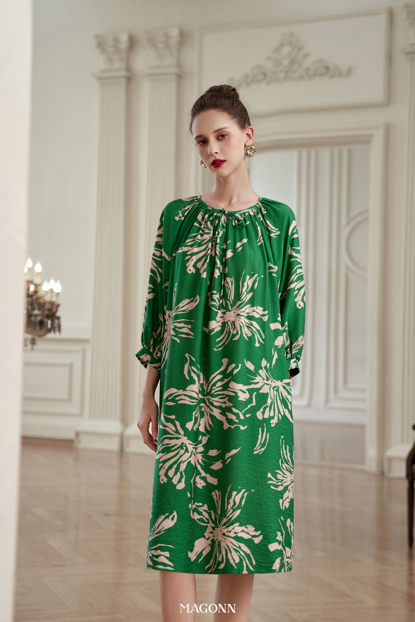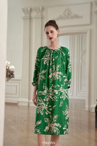 * Kiểu dáng: Váy dáng suông, tay lửng bồng, kèm đai