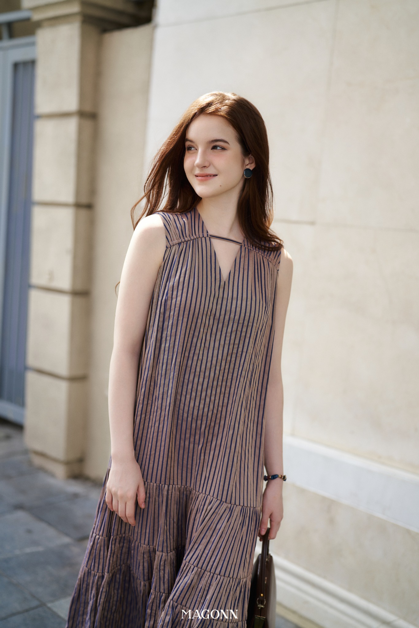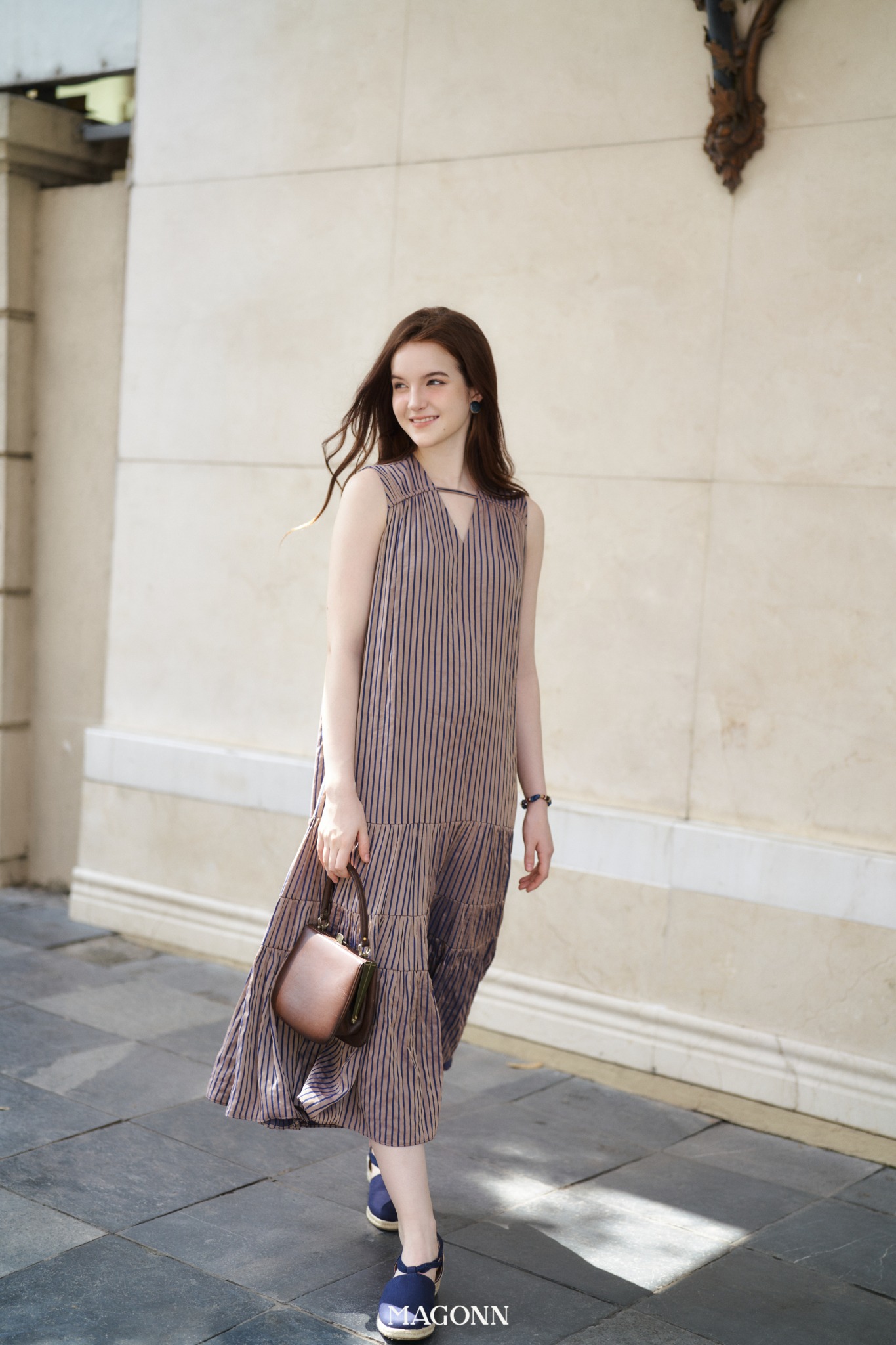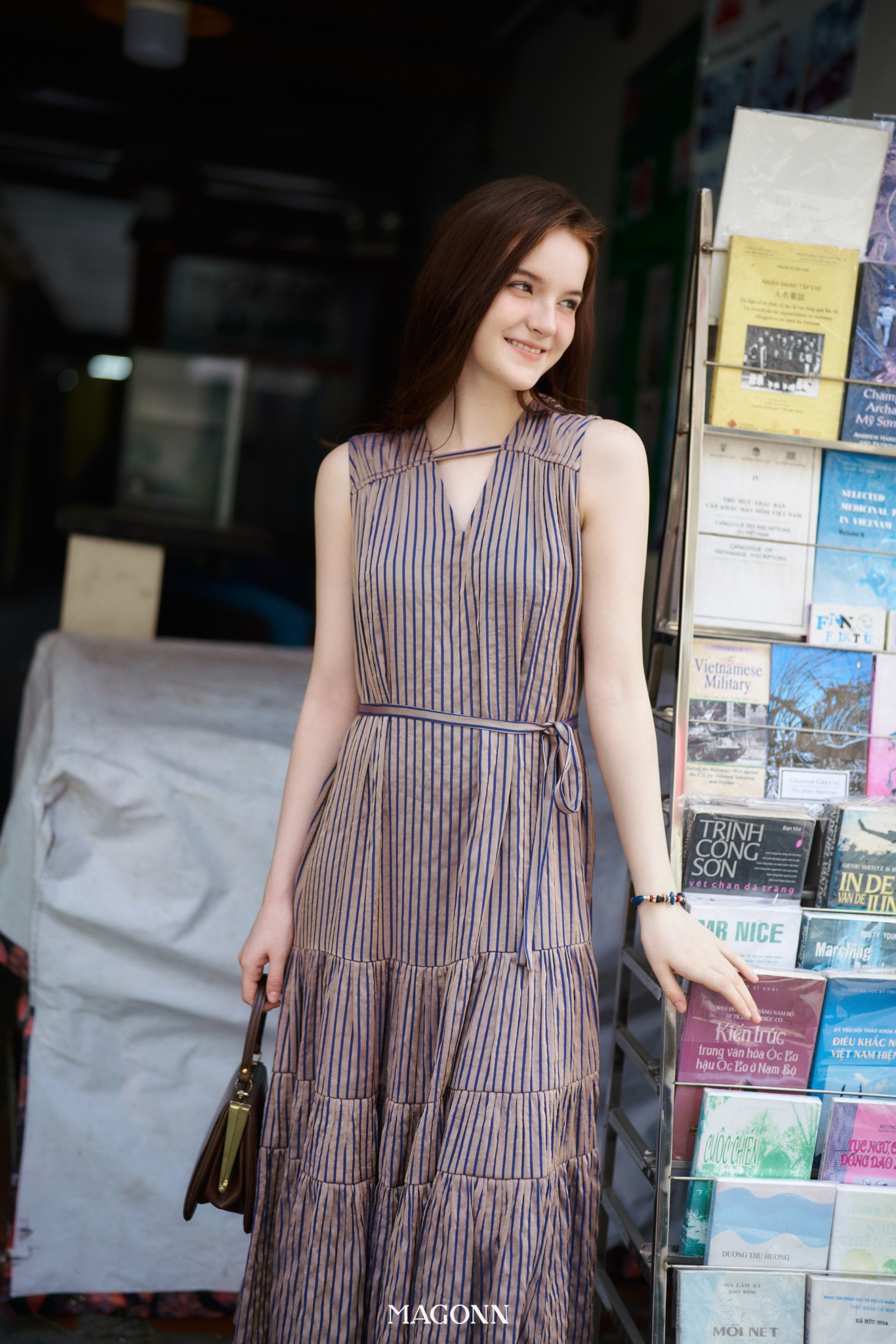 * Kiểu dáng: Váy sát nách, cổ V, dáng suông, đai rời