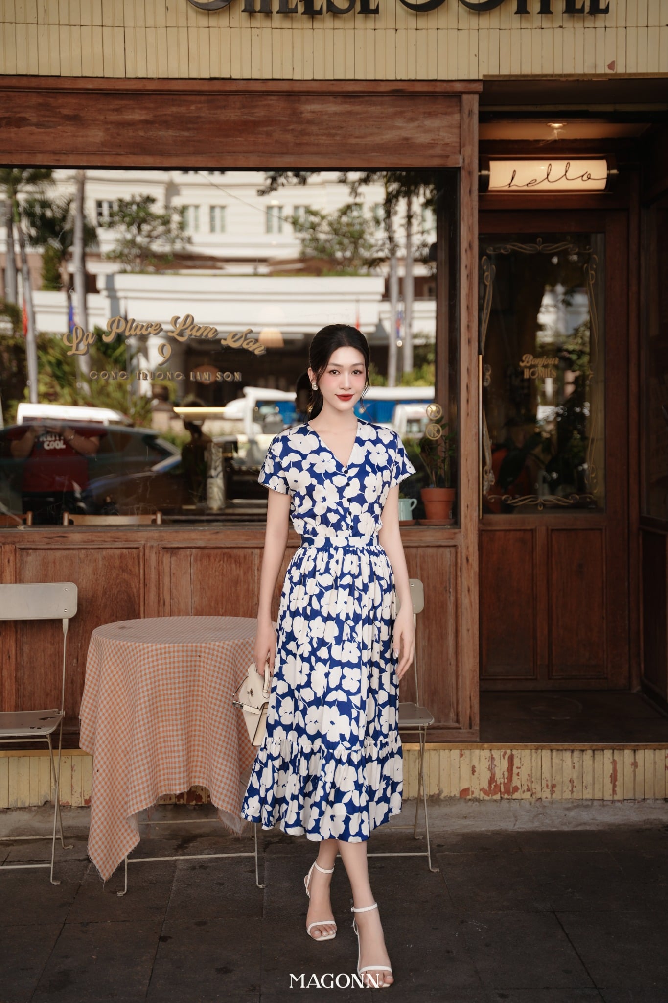 * Kiểu dáng: Váy dài, chiết eo, cổ V, tay ngắn