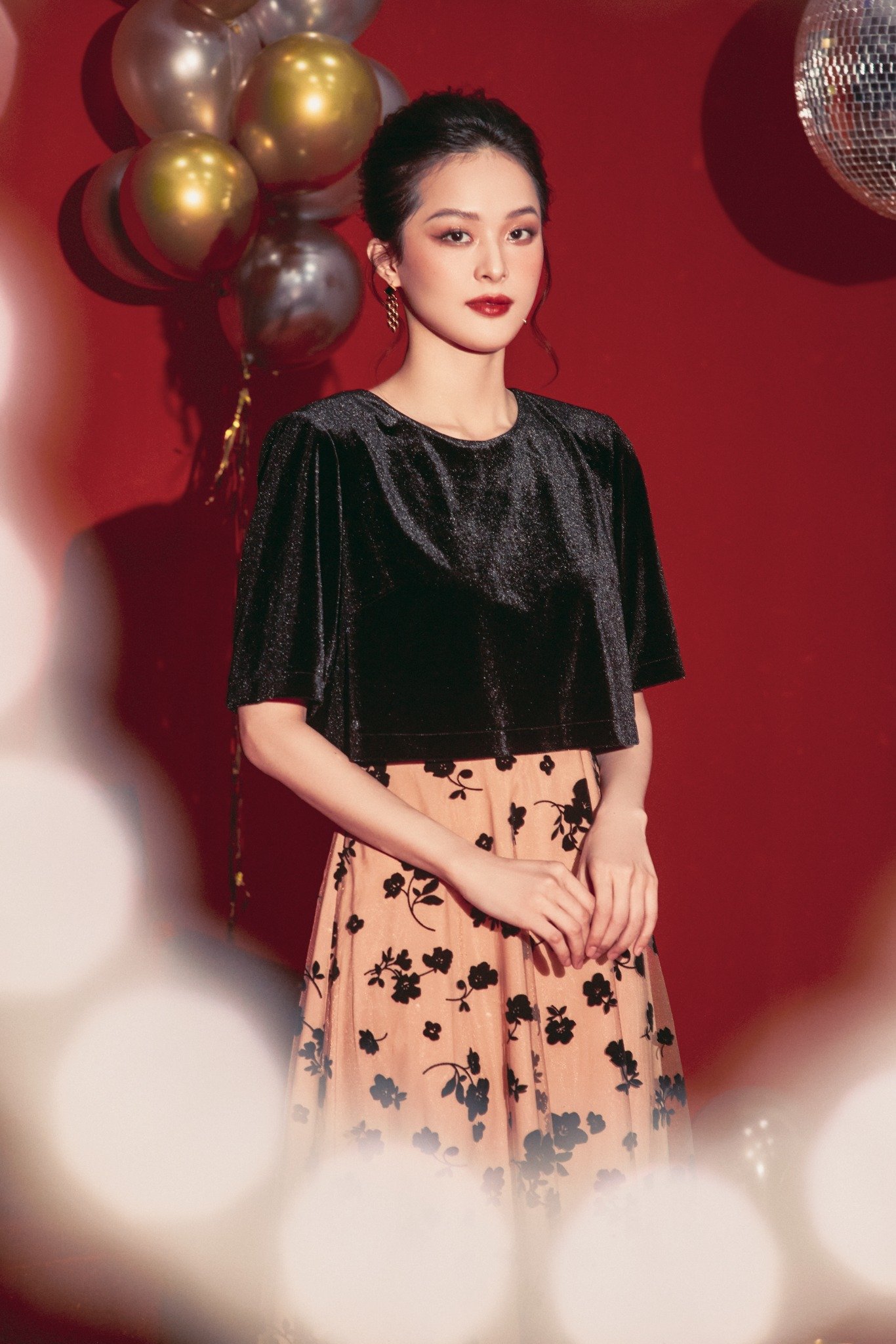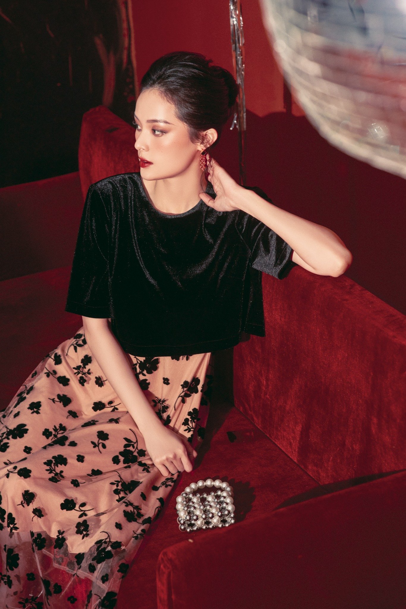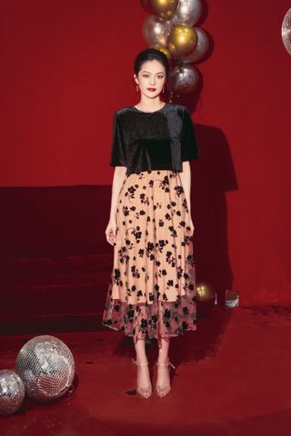 * Chất liệu: Nhung đen phối voan