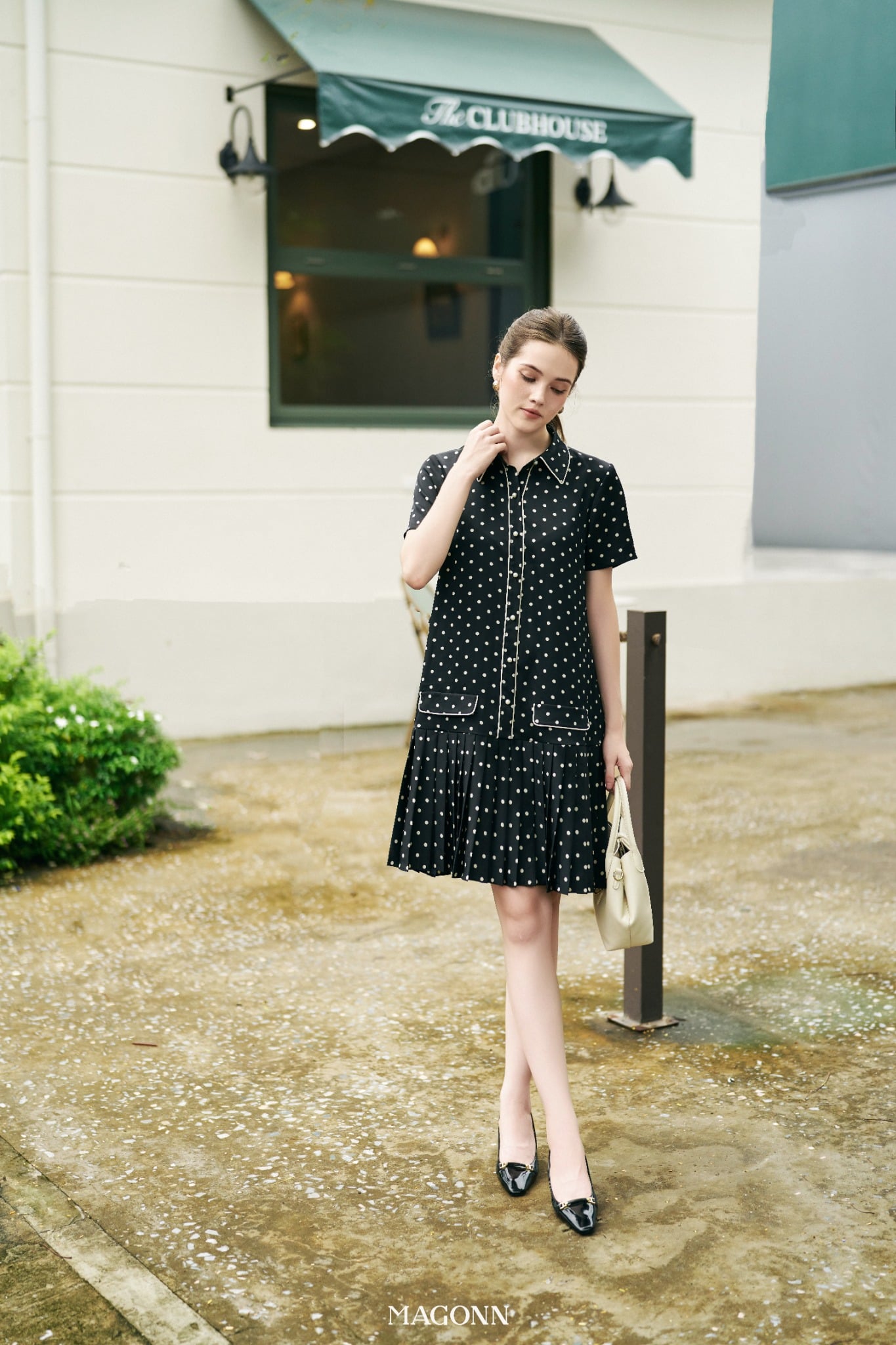 * Kiểu dáng: Váy suông, cổ sơ mi, tay ngắn