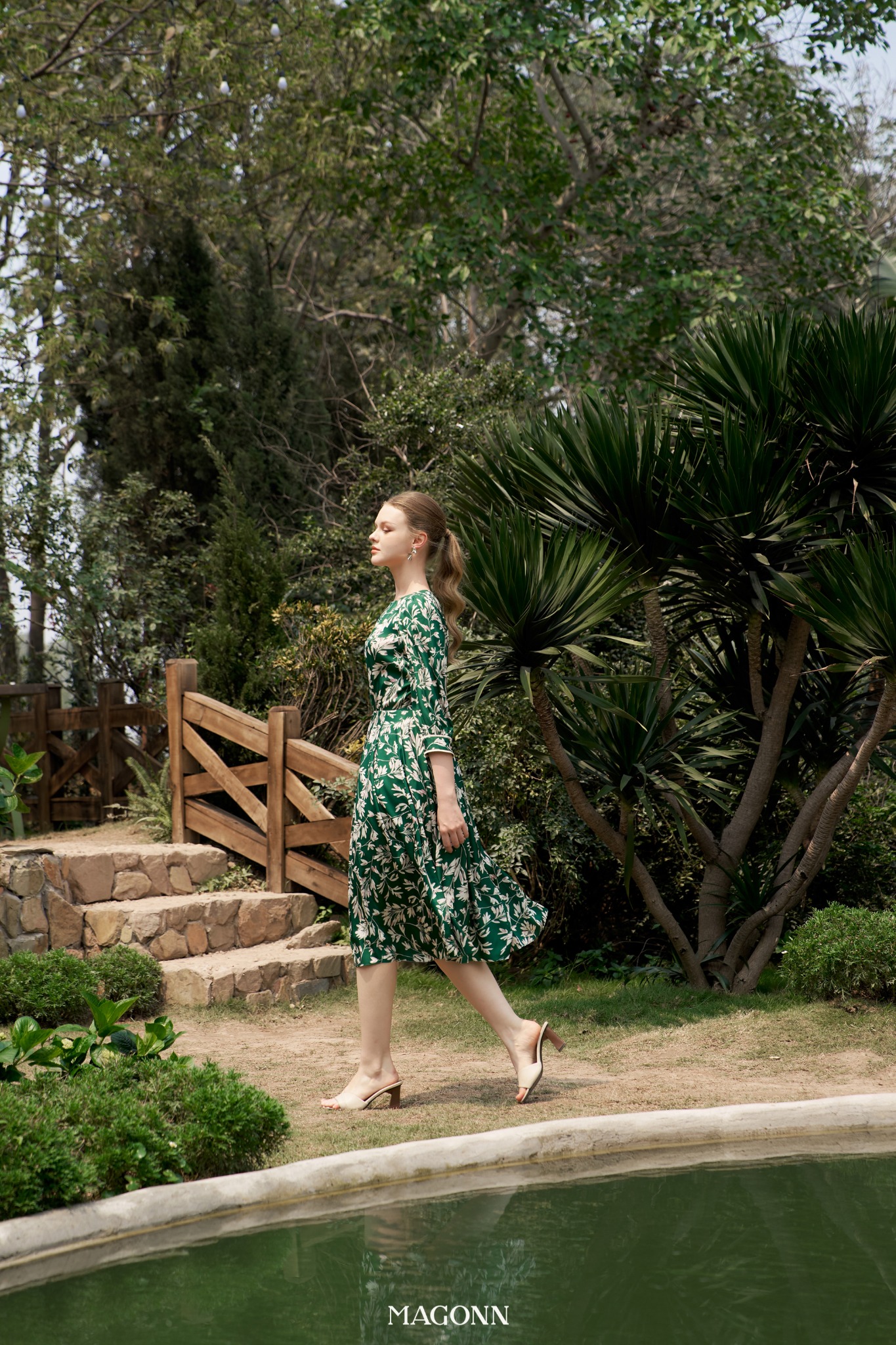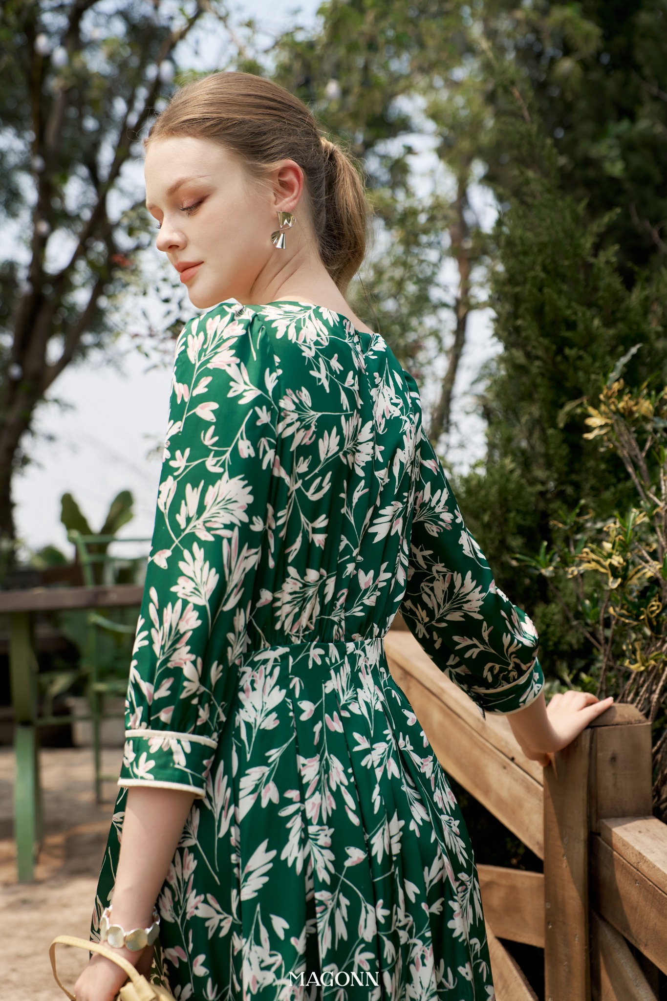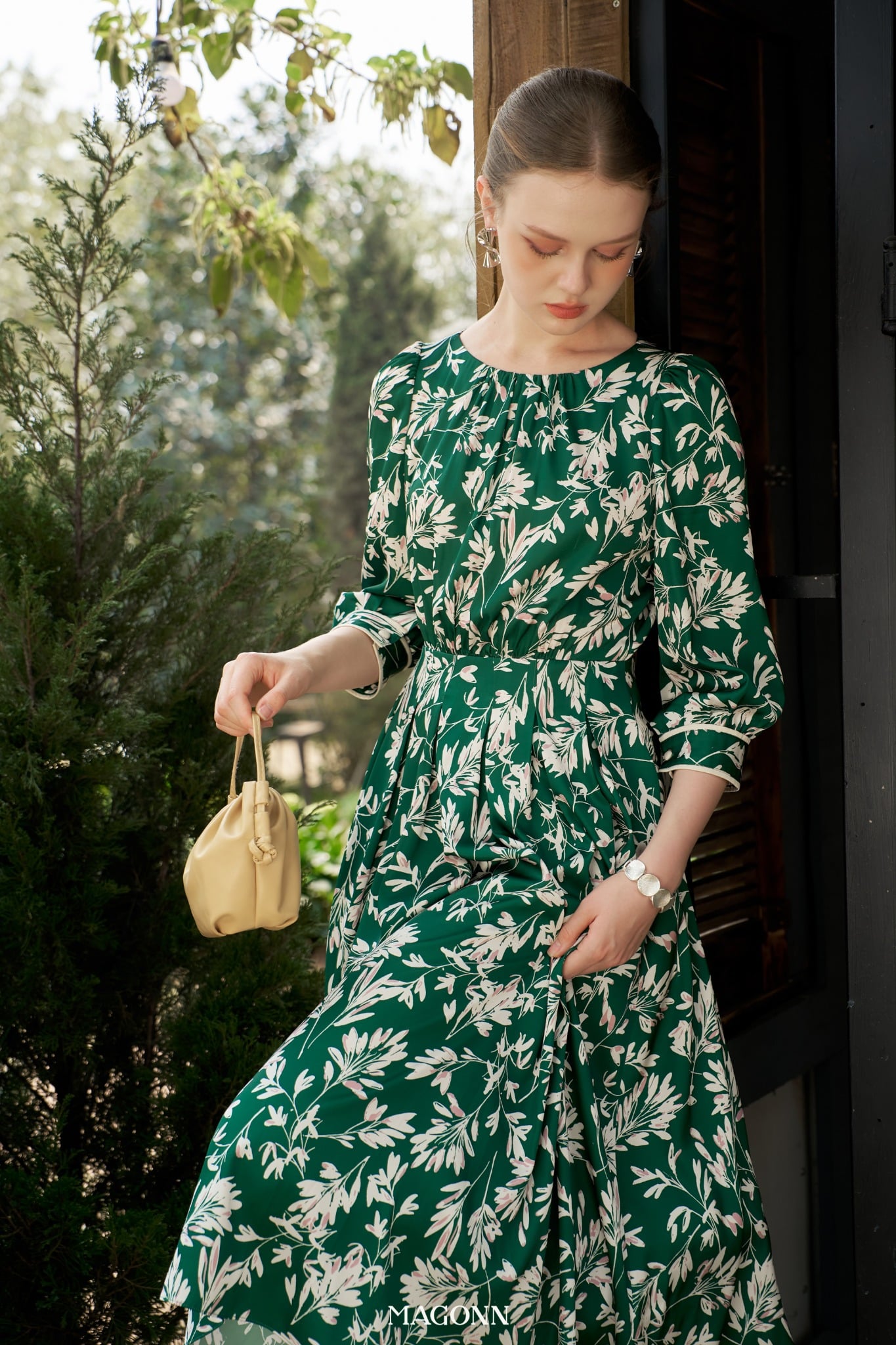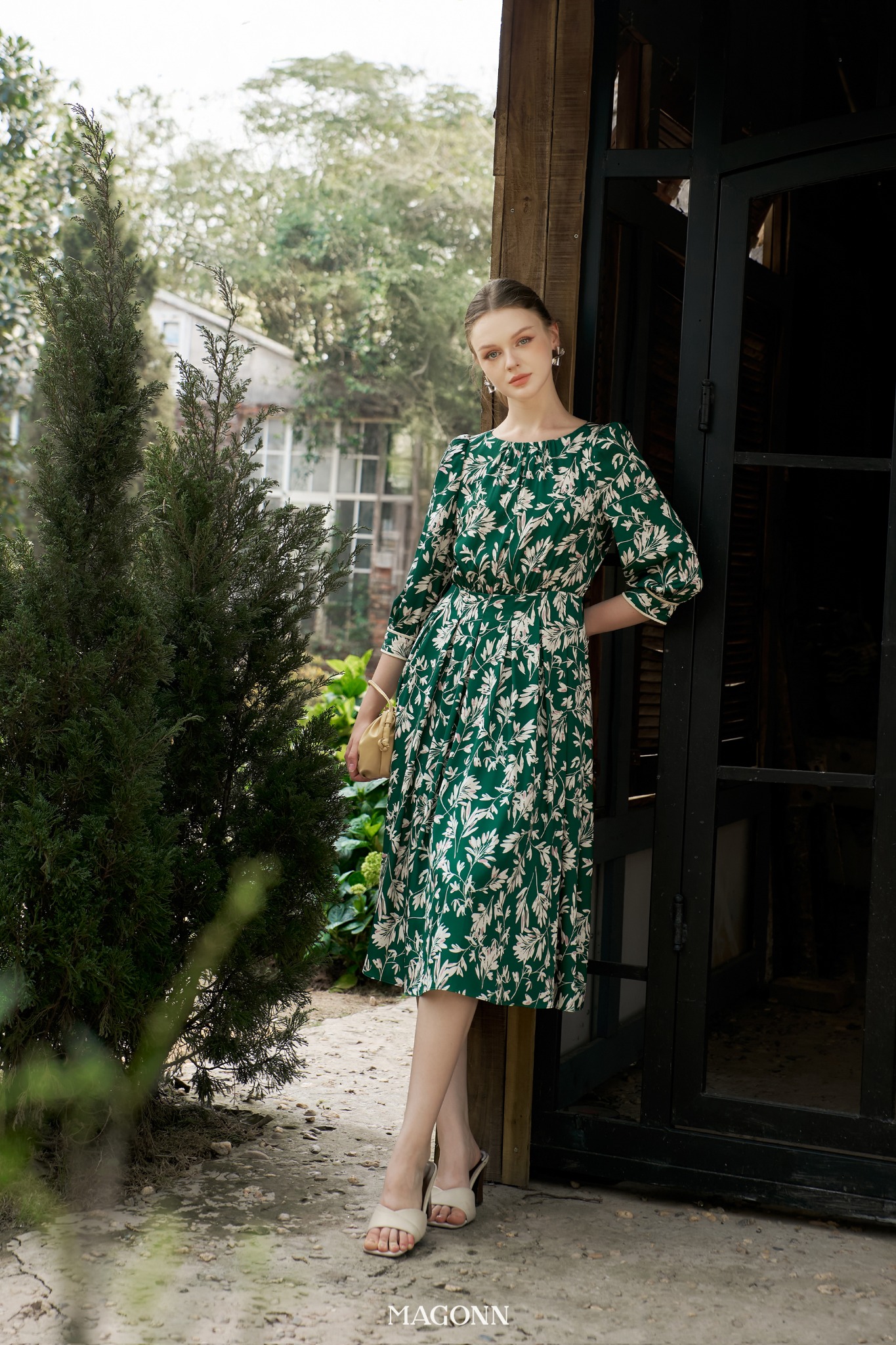 * Kiểu dáng: Váy chiết eo, cổ thuyền, tay lửng