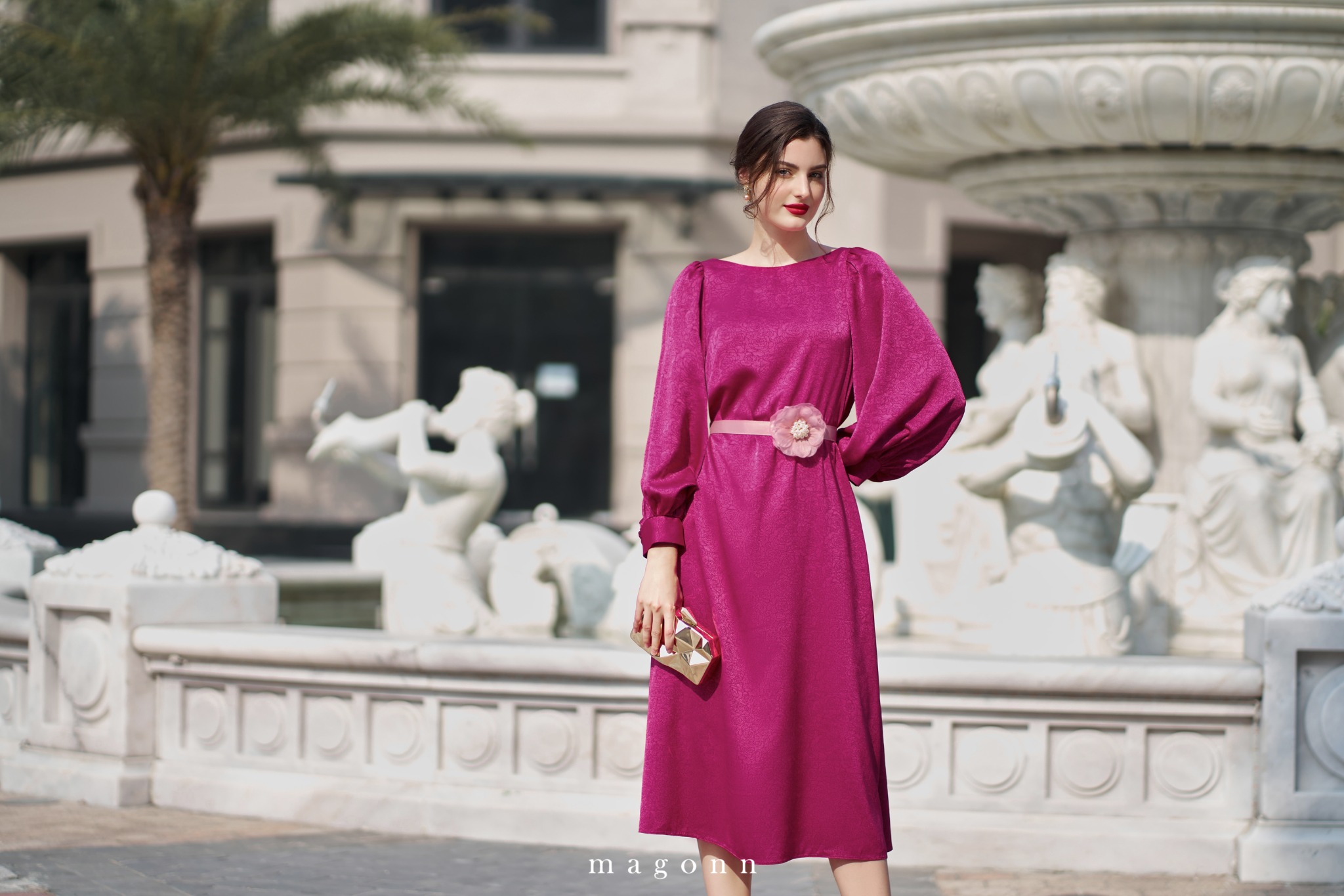 | * Kiểu dáng: Váy liền cổ thuyền, tay bồng, dáng suông * Chất liệu: Gấm hoa * Màu sắc: Hồng sen '#### LƯU Ý: - FREESHIP cho đơn hàng Online giá trị từ 2.000.000đ. - Magonn không hỗ trợ xem hàng. - Khách hàng giữ lại hóa đơn cùng tag giá và mác dệt sản phẩm để được hỗ trợ trong trường hợp muốn đổi hoặc sửa với hàng Nguyên Giá. - Hàng giảm giá không áp dụng đổi hàng và không áp dụng chỉnh sửa. - Các sản phẩm đã thanh toán không được hoàn lại tiền vì bất cứ lý do nào. - Thông tin chi tiết về chính sách đổi/sửa xem tại: https://magonn.com/pages/chinh-sach-mua-hang Thông tin thêm về số lượng tồn sản phẩm liên hệ hotline: 0888482886 |