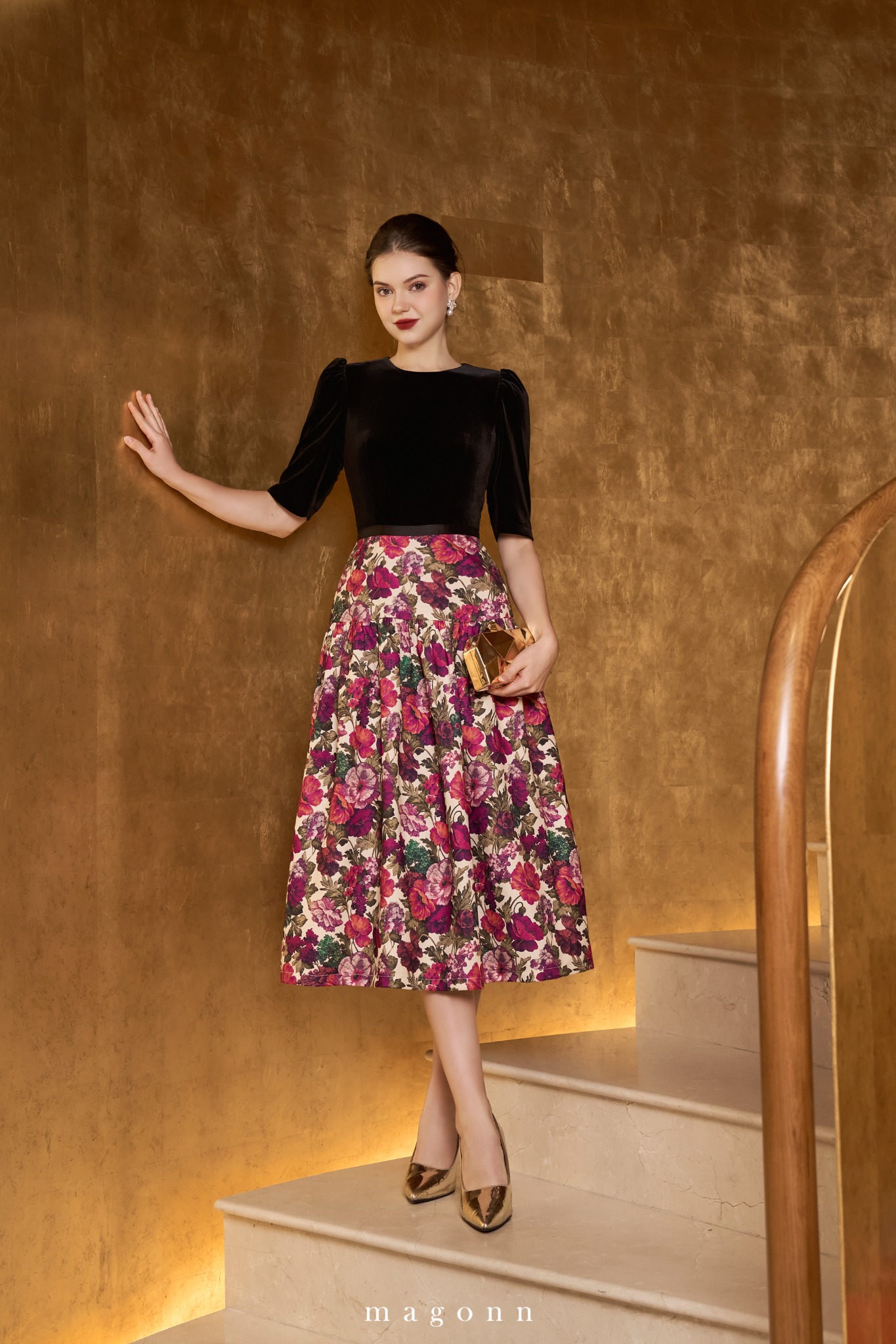 * Kiểu dáng: Váy liền cổ tròn, tay lửng, chiết eo * Chất liệu: Nhung đen phối chân váy gấm * Màu sắc: Đen phối gấm hoa tím LƯU Ý: - FREESHIP cho đơn hàng Online giá trị từ 2.000.000đ. - Magonn không hỗ trợ xem hàng. - Khách hàng giữ lại hóa đơn cùng tag giá và mác dệt sản phẩm để được hỗ trợ trong trường hợp muốn đổi hoặc sửa với hàng Nguyên Giá. - Hàng giảm giá không áp dụng đổi hàng và không áp dụng chỉnh sửa. - Các sản phẩm đã thanh toán không được hoàn lại tiền vì bất cứ lý do nào. - Thông tin chi tiết về chính sách đổi/sửa xem tại: https://magonn.com/pages/chinh-sach-mua-hang Thông tin thêm về số lượng tồn sản phẩm liên hệ hotline: 0888482886 |