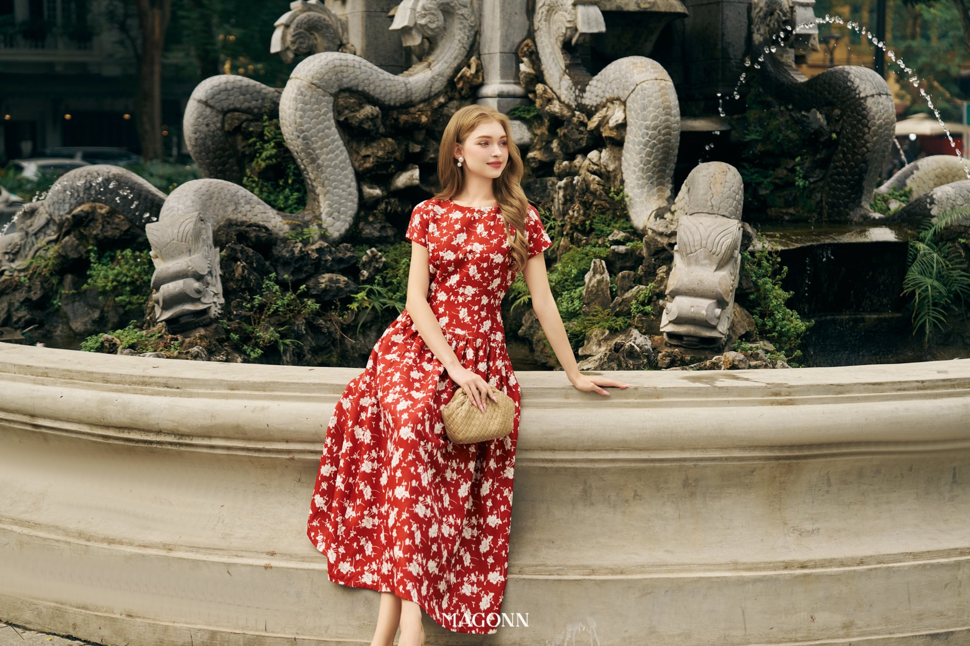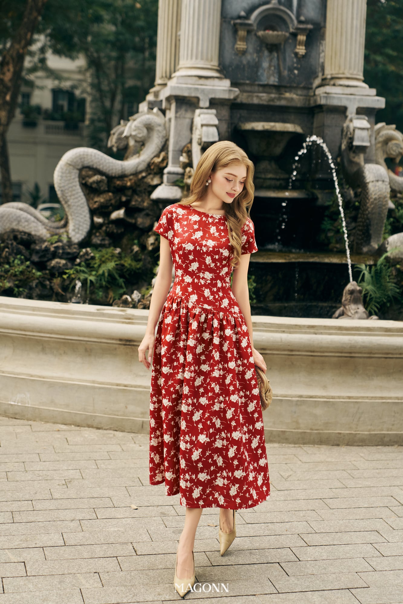 * Kiểu dáng: Váy dáng dài, chiết eo, tay ngắn