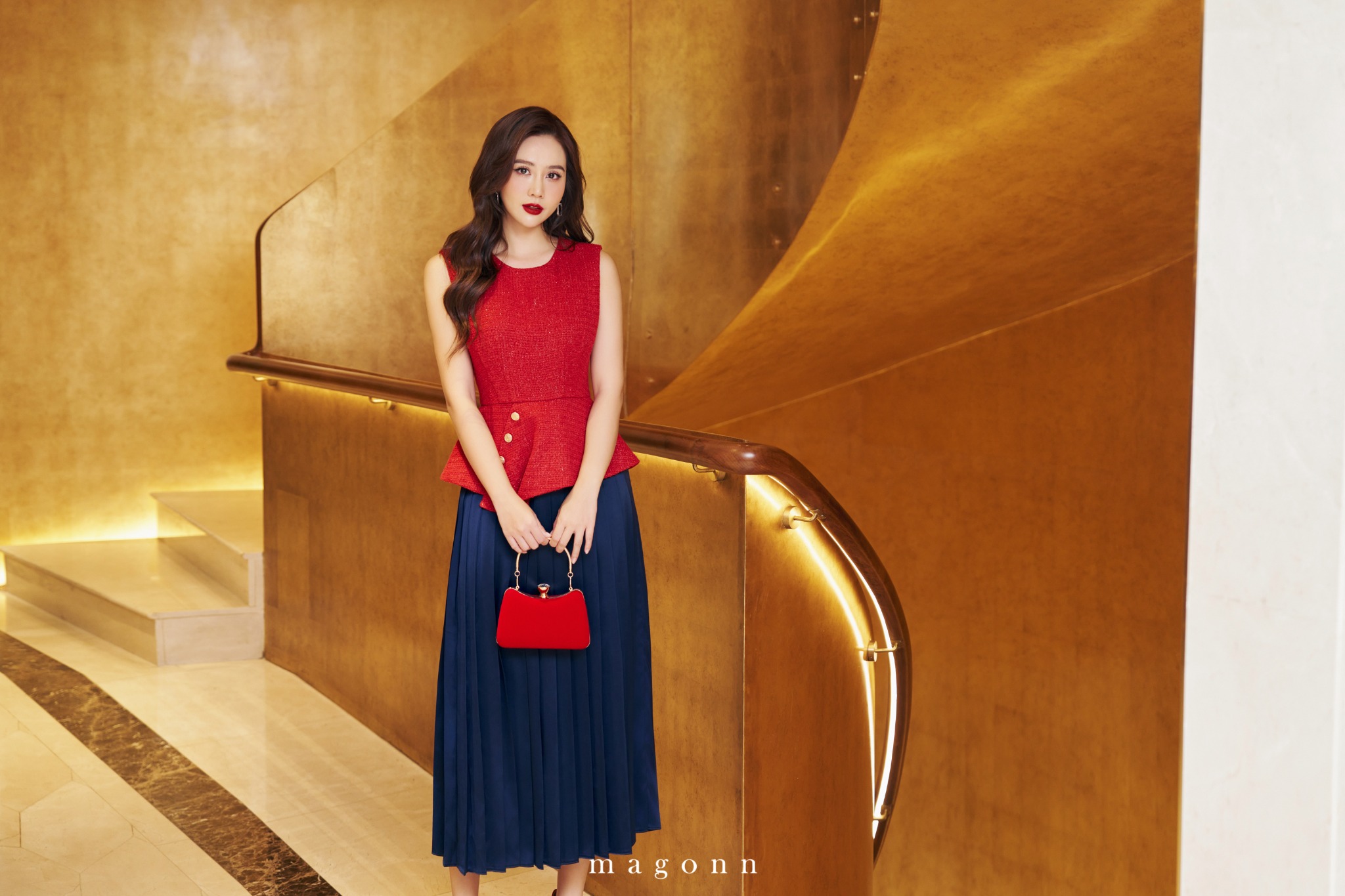 | * Kiểu dáng: Váy liền cổ tròn, không tay, chân váy xếp ly * Chất liệu: Dạ tếch phối lụa vân * Màu sắc: đỏ phối xanh navy '#### LƯU Ý: - FREESHIP cho đơn hàng Online giá trị từ 2.000.000đ. - Magonn không hỗ trợ xem hàng. - Khách hàng giữ lại hóa đơn cùng tag giá và mác dệt sản phẩm để được hỗ trợ trong trường hợp muốn đổi hoặc sửa với hàng Nguyên Giá. - Hàng giảm giá không áp dụng đổi hàng và không áp dụng chỉnh sửa. - Các sản phẩm đã thanh toán không được hoàn lại tiền vì bất cứ lý do nào. - Thông tin chi tiết về chính sách đổi/sửa xem tại: https://magonn.com/pages/chinh-sach-mua-hang Thông tin thêm về số lượng tồn sản phẩm liên hệ hotline: 0888482886 |