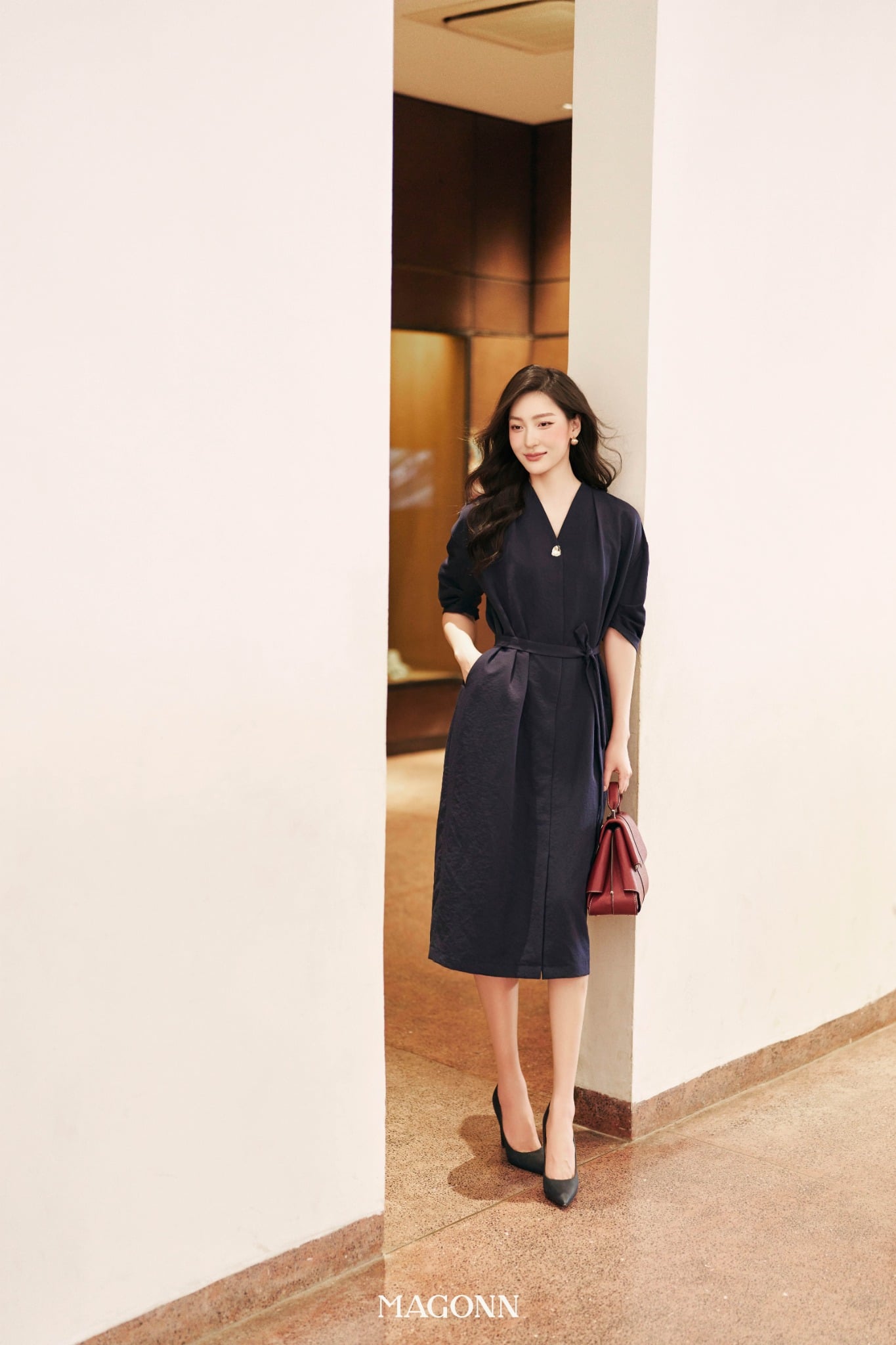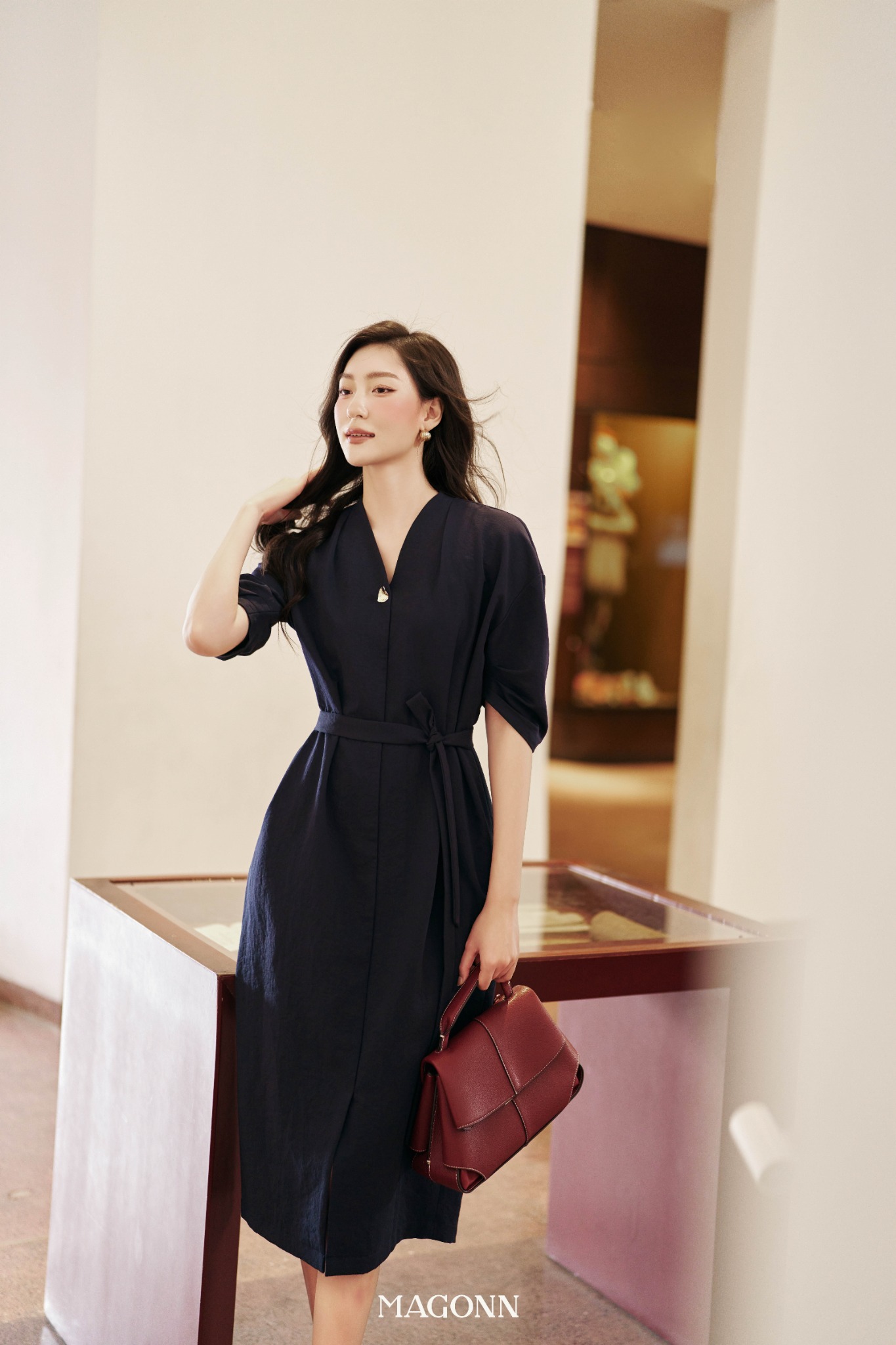 * Kiểu dáng: Váy liền, chiết eo, kèm đai