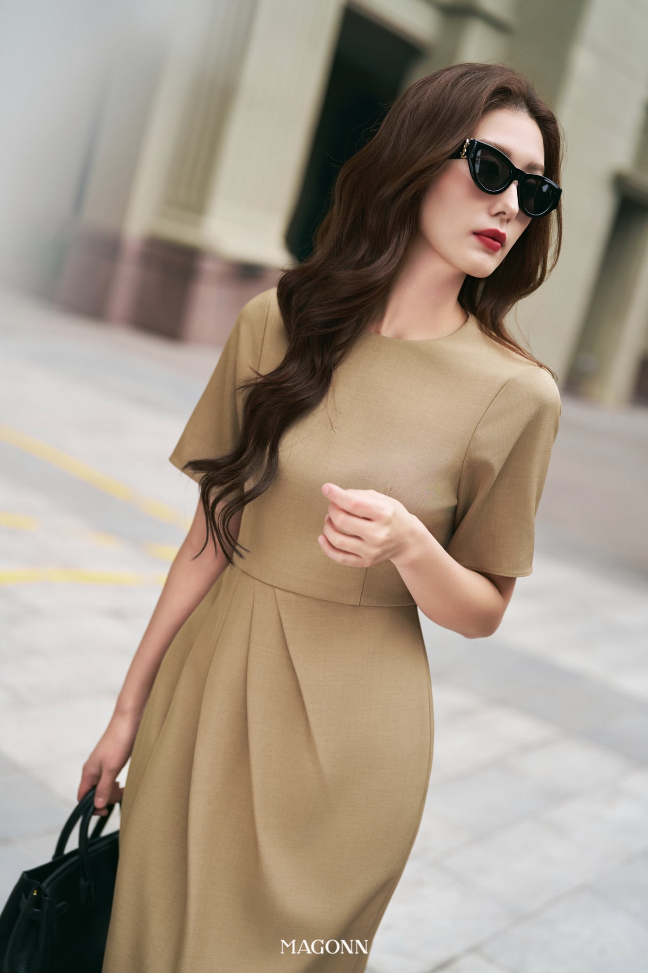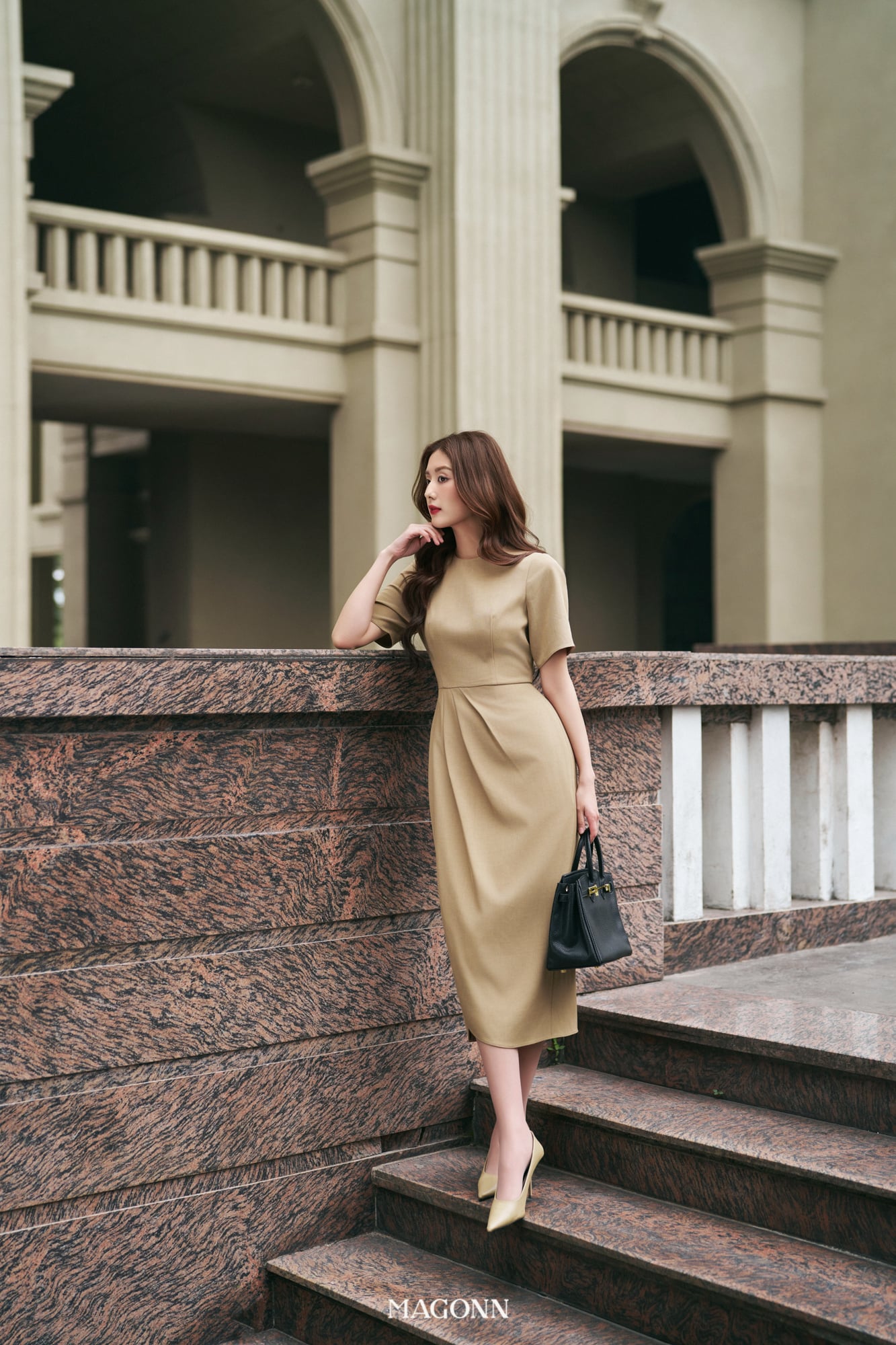 * Kiểu dáng: Váy liền, dáng dài, chiết eo, cổ tròn