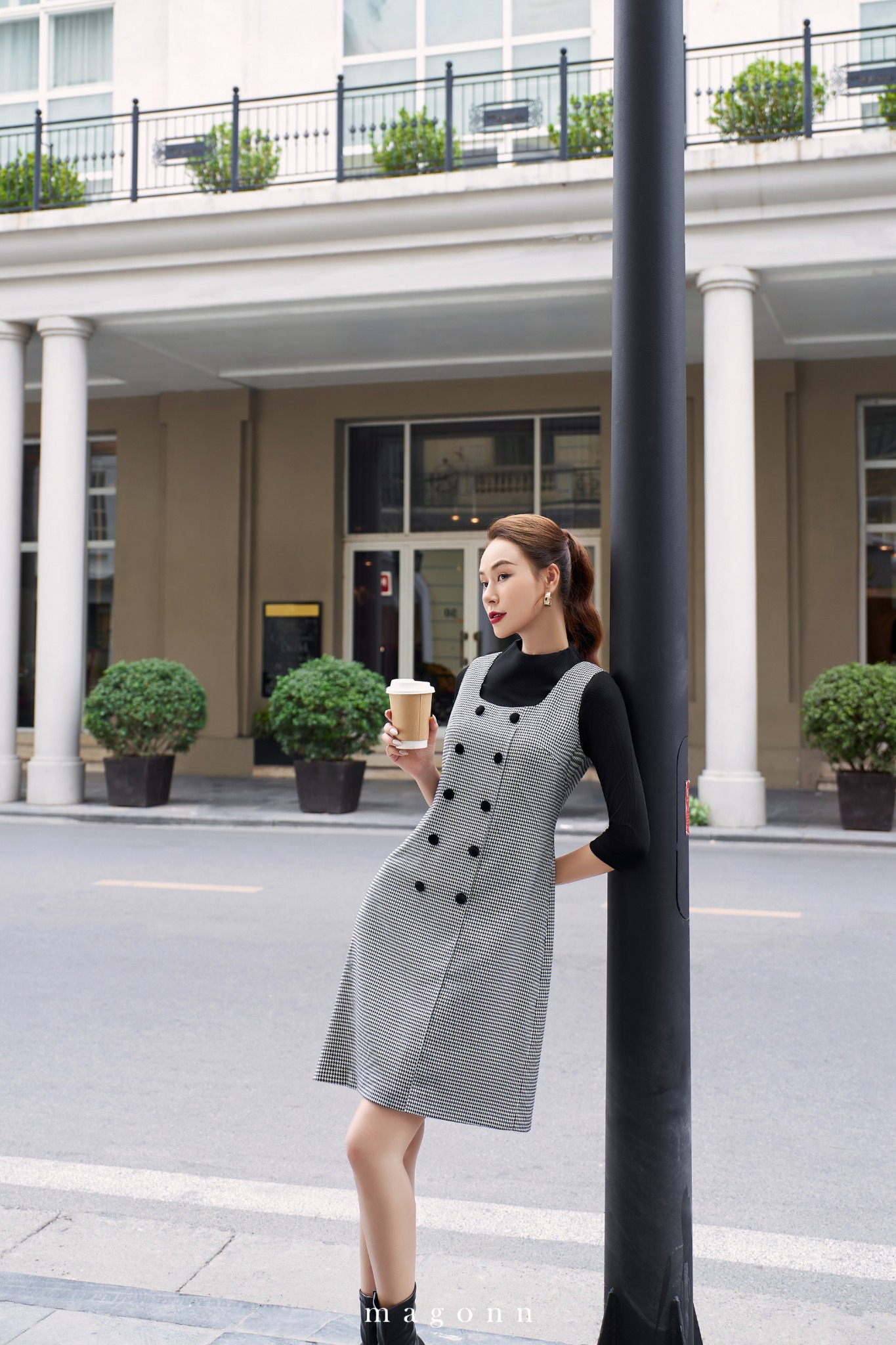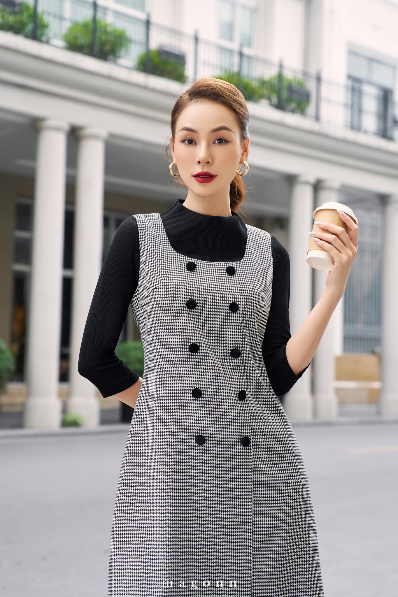 | * Kiểu dáng: Váy hai dây, cổ vuông chiết eo nhẹ, phối cúc phía trước, họa tiết houndstooth * Chất liệu: Dạ * Màu sắc: Đen, trắng '#### LƯU Ý: - FREESHIP cho đơn hàng Online giá trị từ 2.000.000đ. - Magonn không hỗ trợ xem hàng. - Khách hàng giữ lại hóa đơn cùng tag giá và mác dệt sản phẩm để được hỗ trợ trong trường hợp muốn đổi hoặc sửa với hàng Nguyên Giá. - Hàng giảm giá không áp dụng đổi hàng và không áp dụng chỉnh sửa. - Các sản phẩm đã thanh toán không được hoàn lại tiền vì bất cứ lý do nào. - Thông tin chi tiết về chính sách đổi/sửa xem tại: https://magonn.com/pages/chinh-sach-mua-hang Thông tin thêm về số lượng tồn sản phẩm liên hệ hotline: 0888482886 |