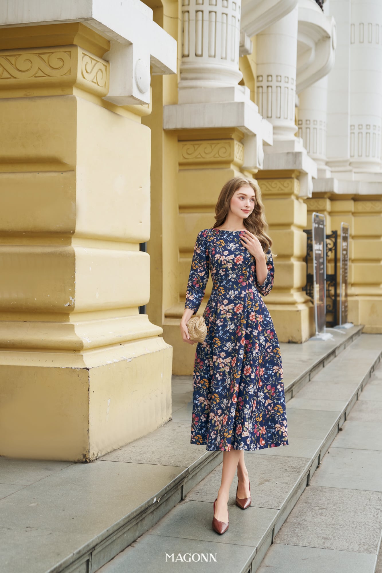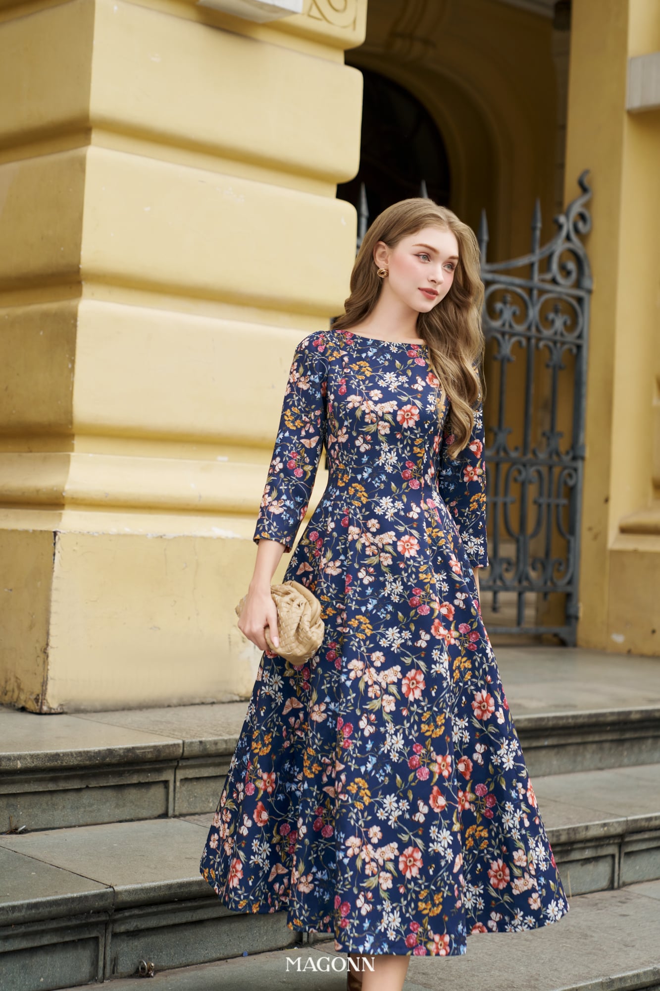* Kiểu dáng: Váy dáng dài, chiết eo, tay lửng