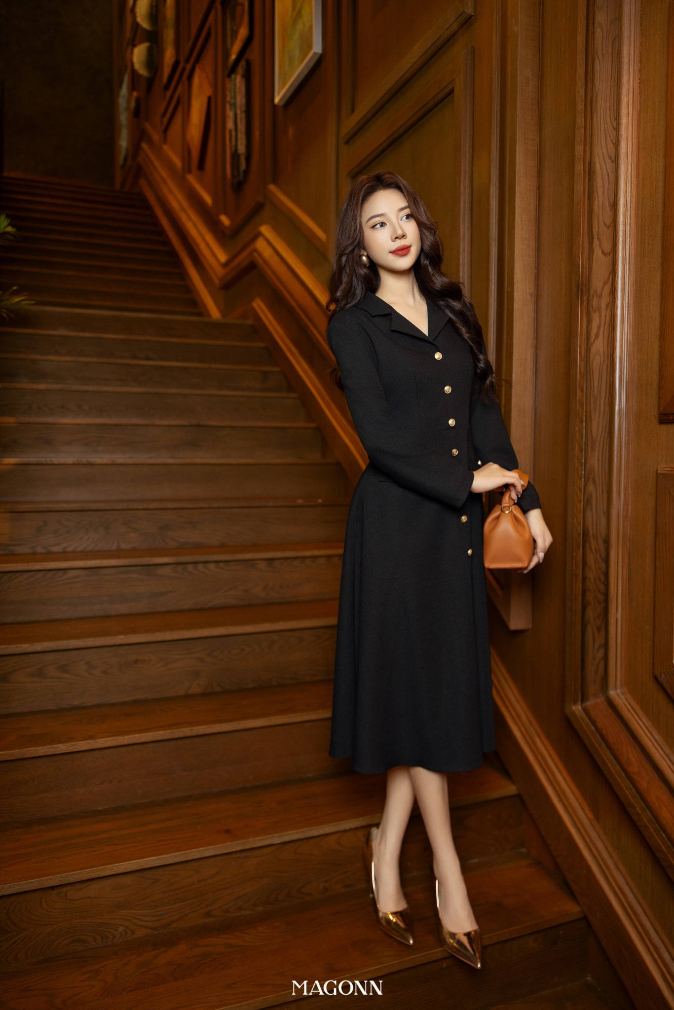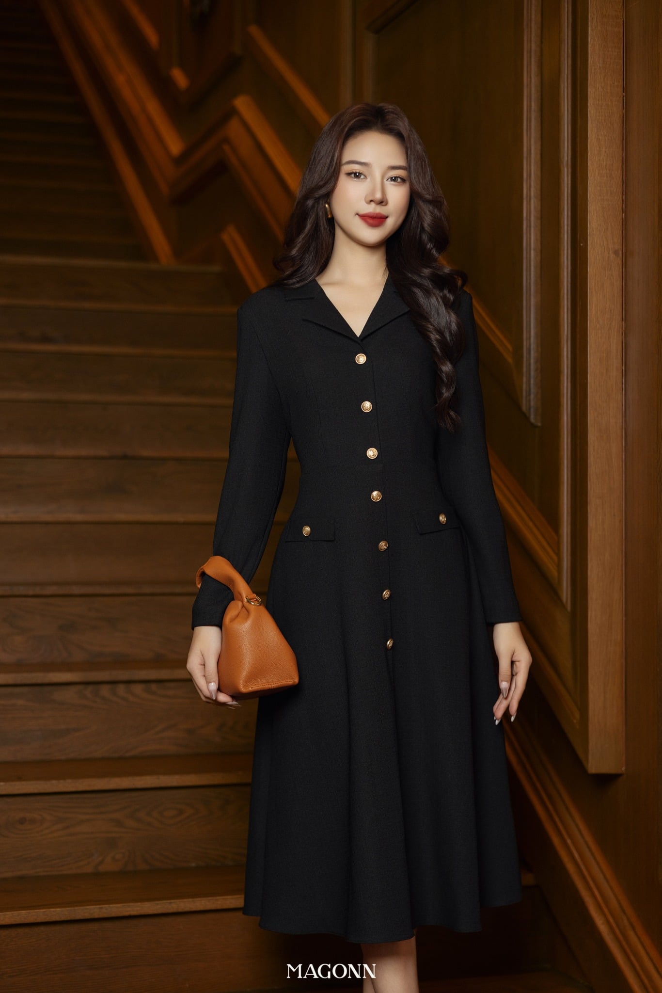 * Kiểu dáng: Váy dáng dài, chiết eo, cổ vest