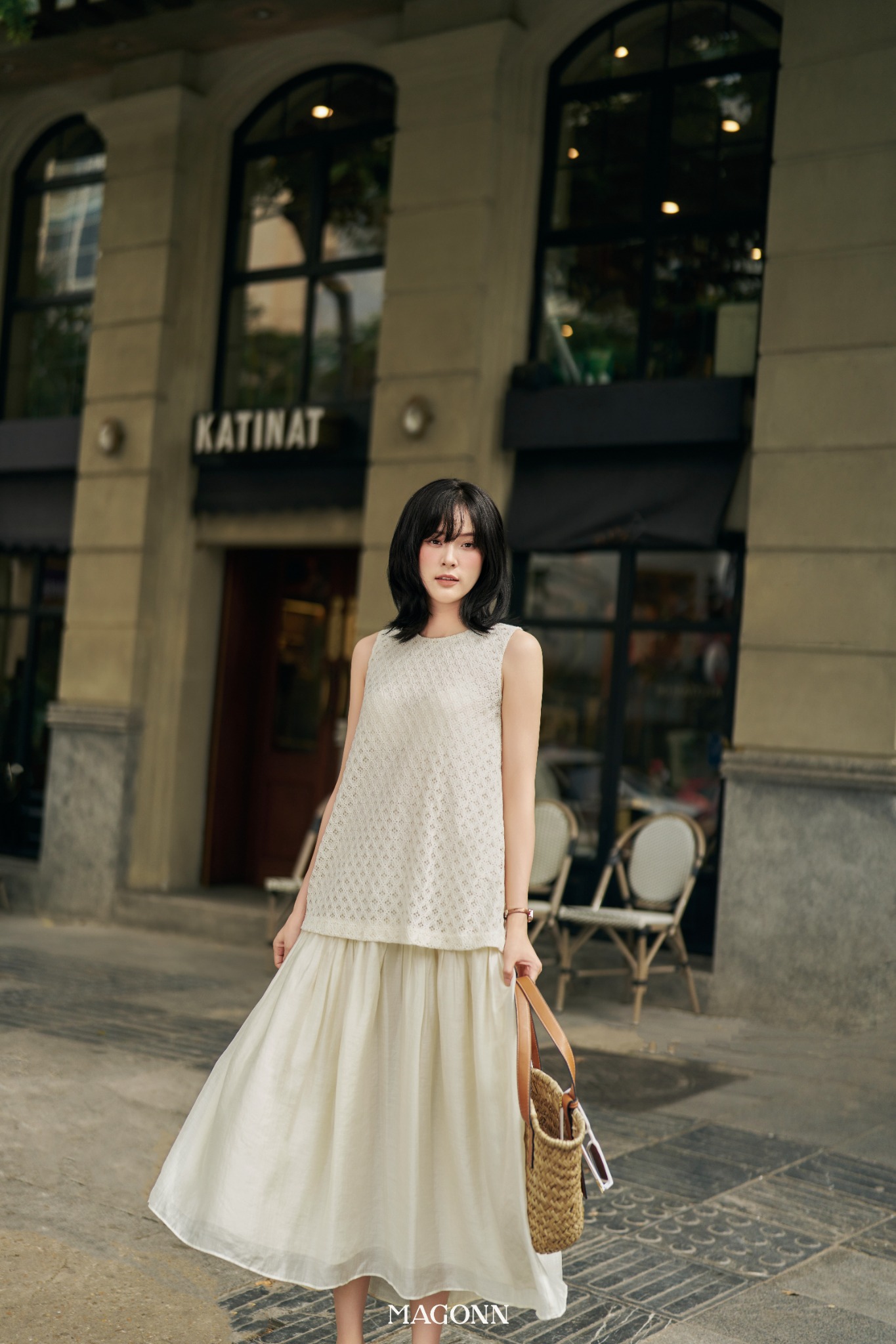 * Kiểu dáng: Váy dáng suông, sát nách, cổ tròn
