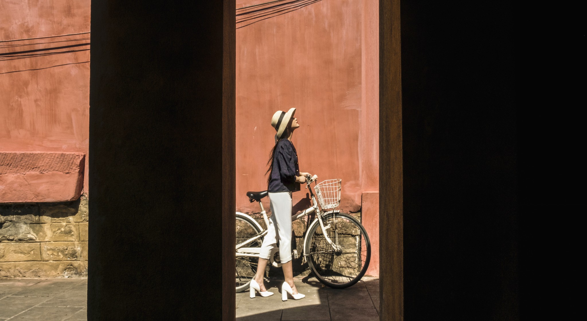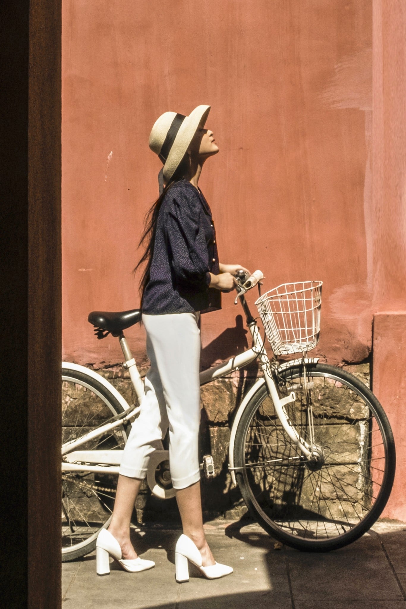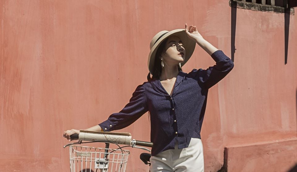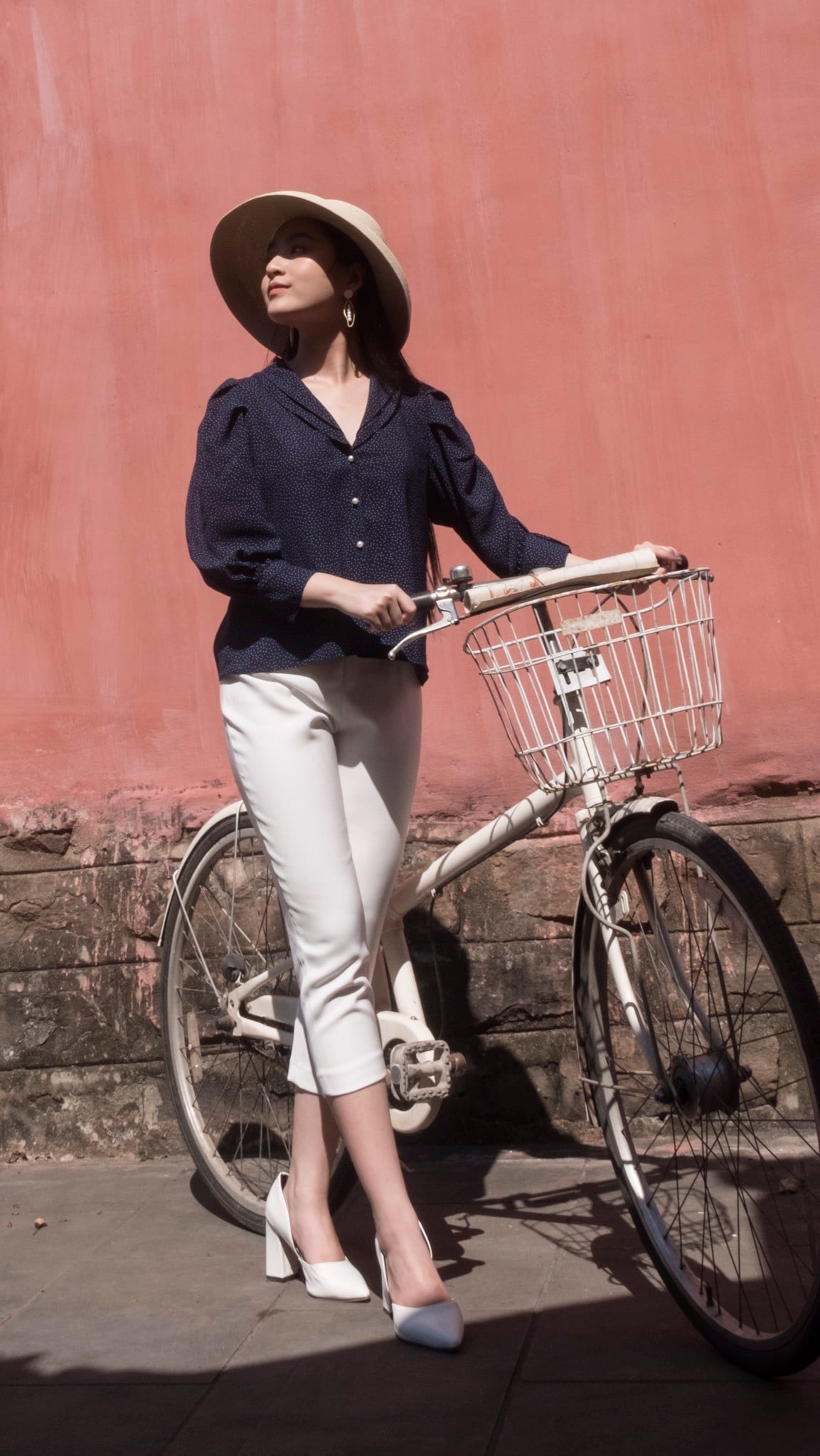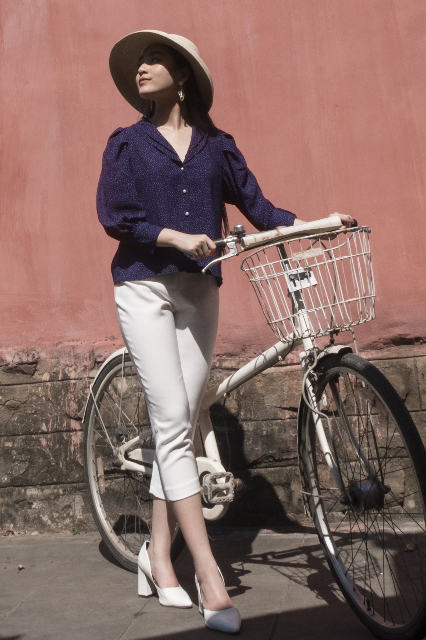 Quần ống ôm, dáng lửng, cạp cao, khóa kéo lưng, không túi
